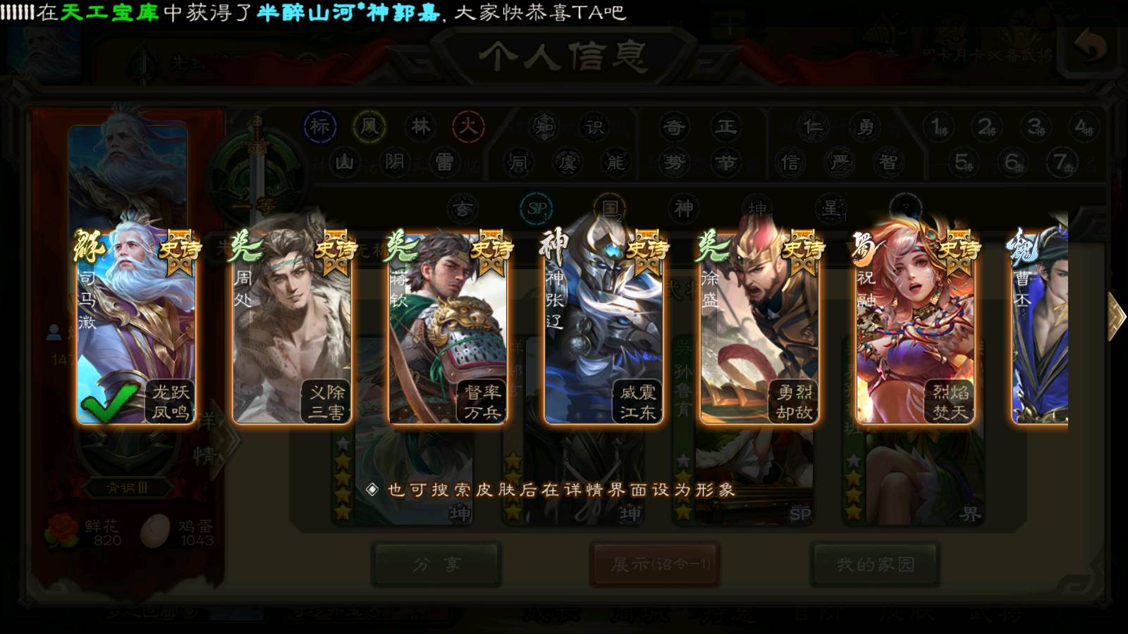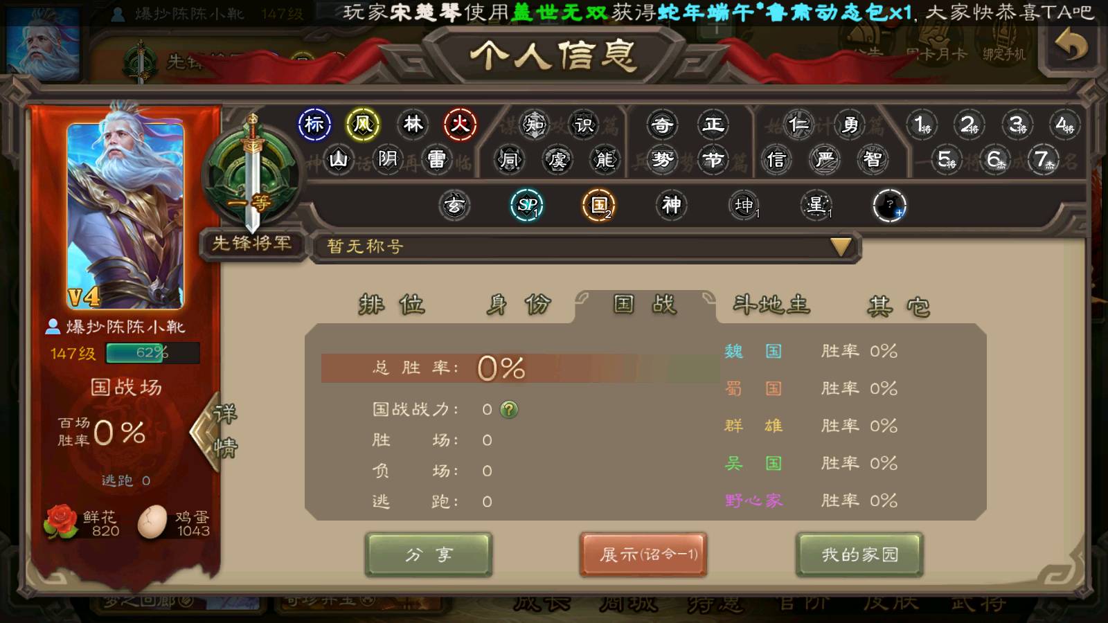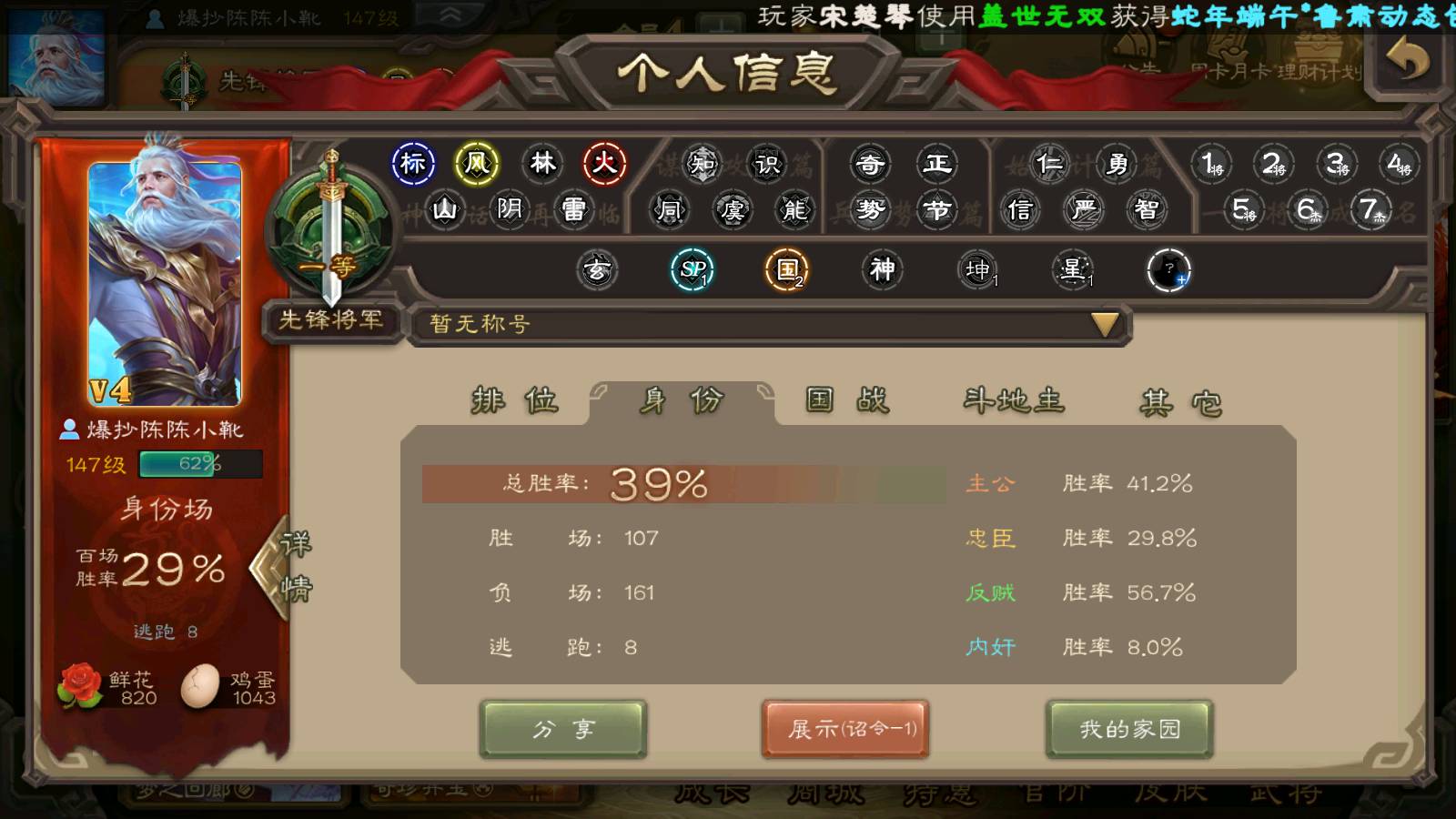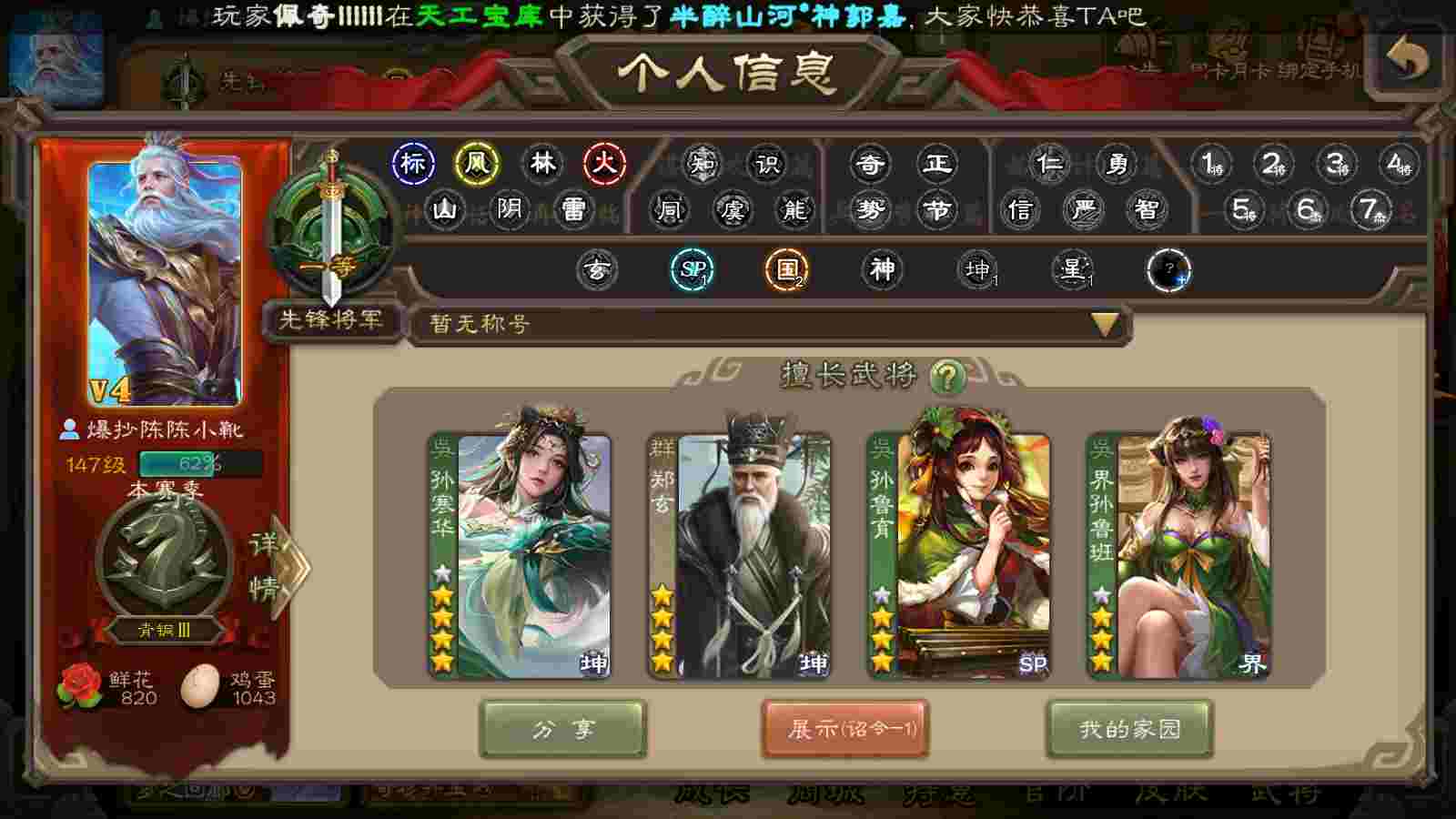 商品编号22024 全部皮肤135,动态皮肤1,全部武将184,排位武将65,国战武将67,史诗武将2,雁翎3.2w
