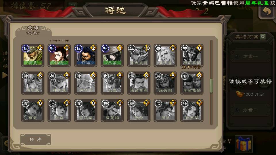 商品编号22027 全部皮肤286,动态皮肤17,全部武将288,排位武将74,国战武将84,史诗武将23,宝珠22