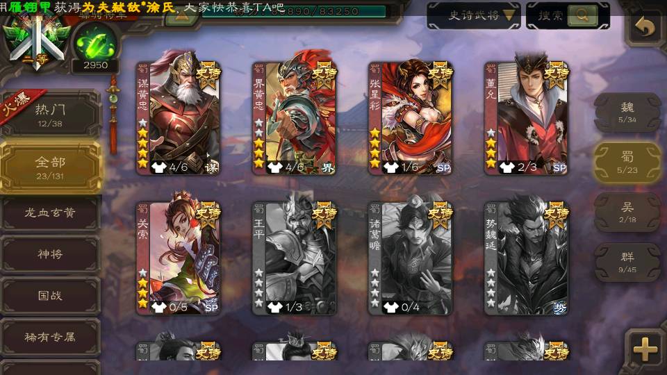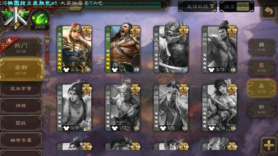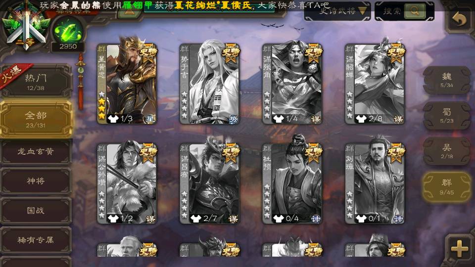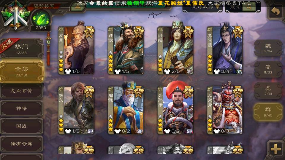 (群雄):麴义,许攸,界李儒,公孙康,陶谦,星黄忠,左慈,沮授,兀突骨