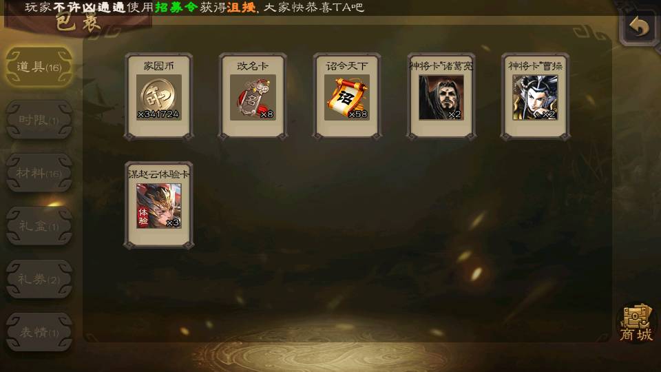 (蜀国):谋黄忠,界黄忠,关索,张星彩,董允