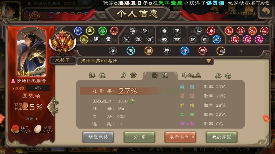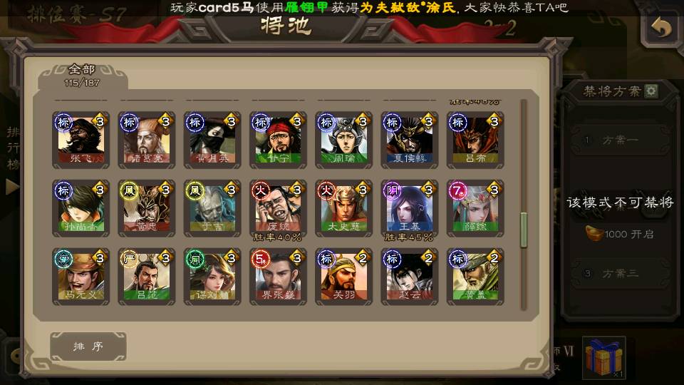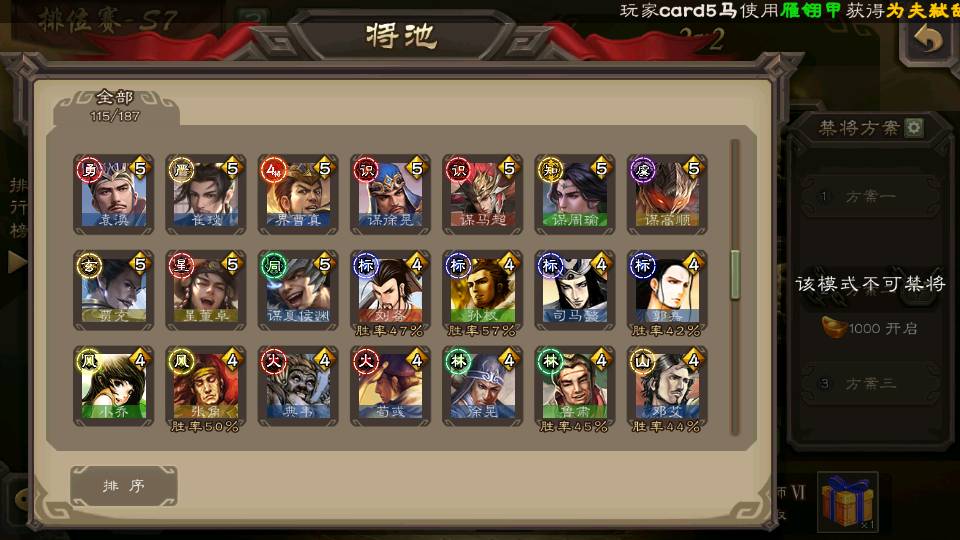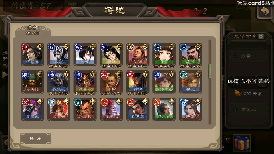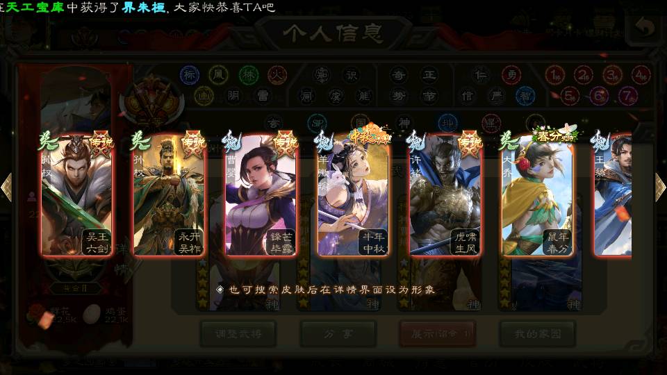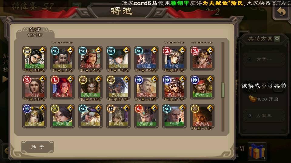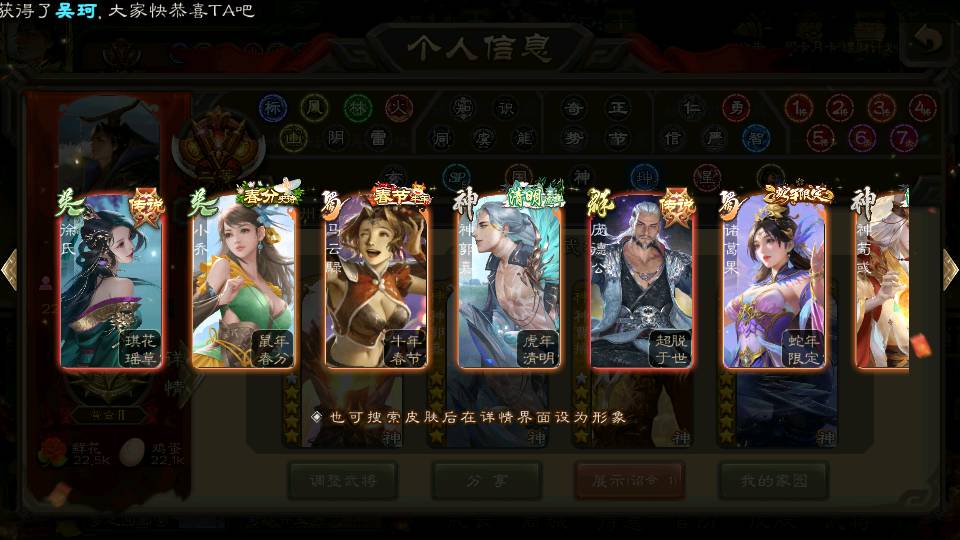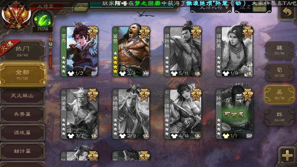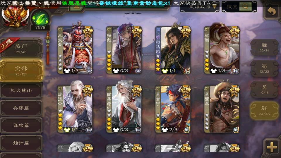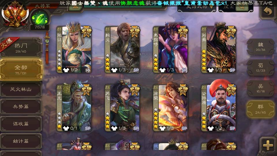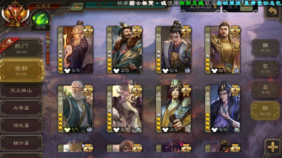 (群雄):刘焉,徐荣,杨彪,杜预,祢衡,界左慈,张仲景,南华老仙,庞德公,麴义,许攸,司马昭,张让,界李儒,苏飞,卑弥呼,王允,公孙康,星甘宁,刘璋,星董卓,左慈,沮授,兀突骨