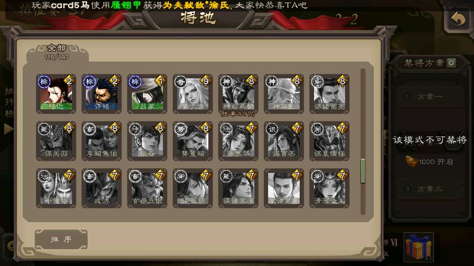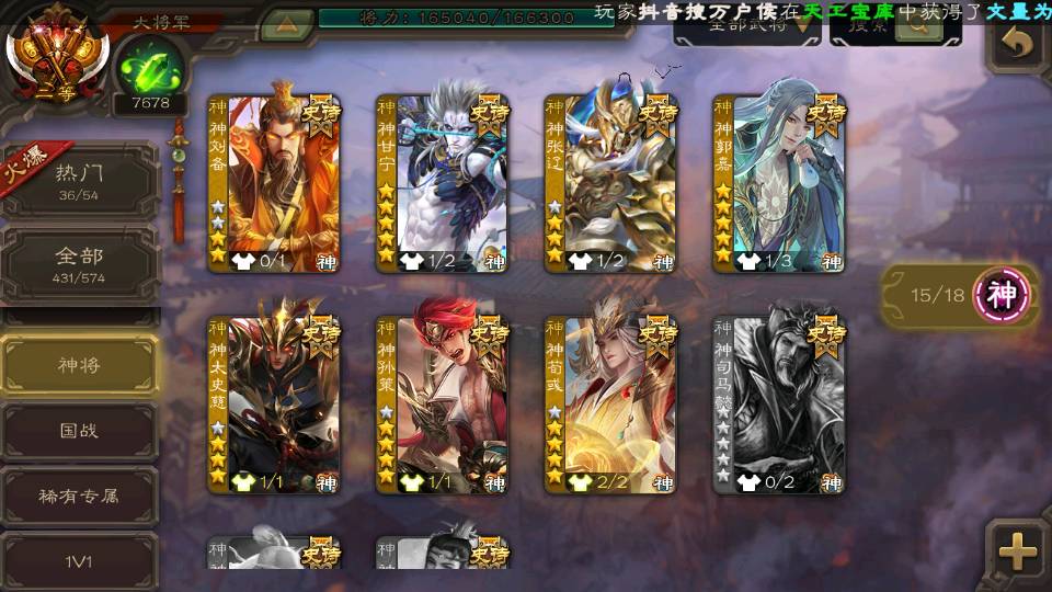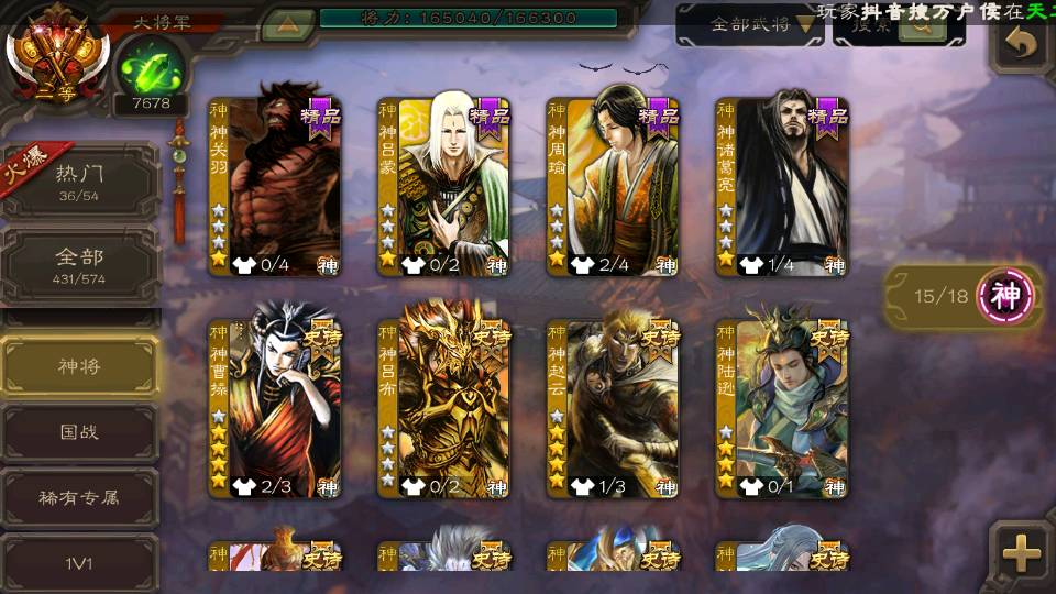 (神将):神荀彧,神郭嘉,神甘宁,神曹操,神孙策,神太史慈,神陆逊,神赵云,神吕布,神刘备,神张辽