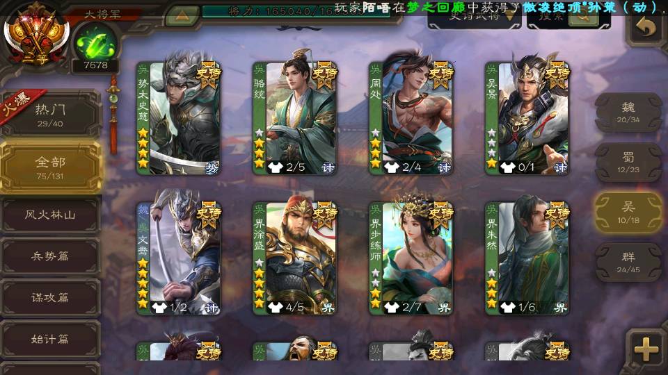 (吴国):界徐盛,留赞,势太史慈,周处,骆统,界朱然,界步练师,吴景,贺齐