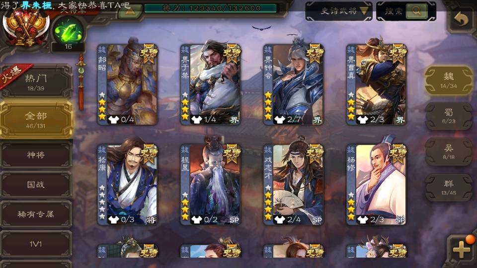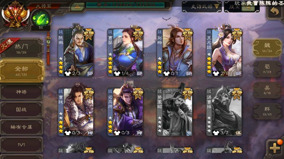 (魏国):曹婴,王元姬,戏志才,界钟会,司马师,界于禁,郝昭,界曹真,程昱,曹纯,杨修,陈琳,嵇康,刘晔