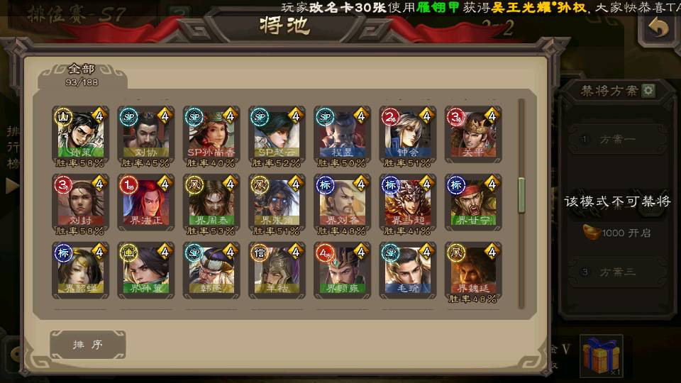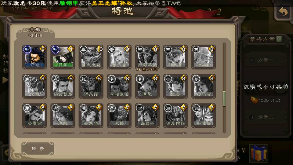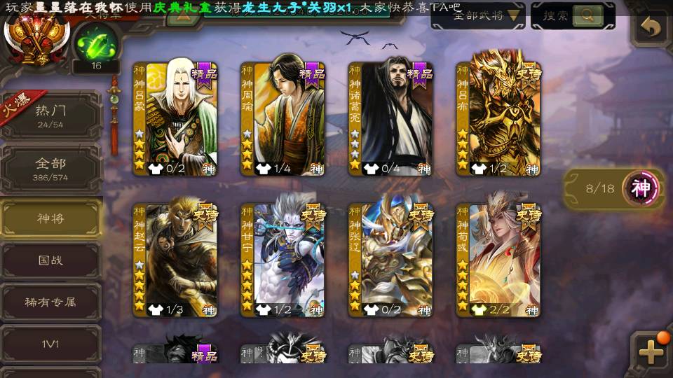 (神将):神荀彧,神甘宁,神赵云,神吕布,神张辽