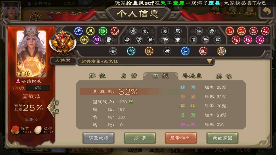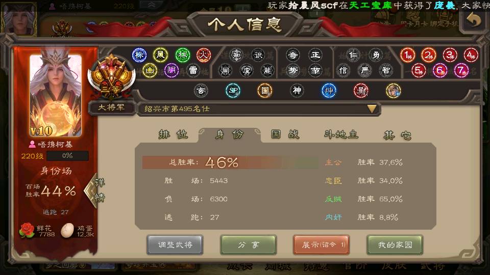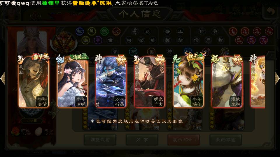 商品编号22074 全部皮肤365,动态皮肤41,全部武将386,排位武将93,国战武将94,史诗武将46