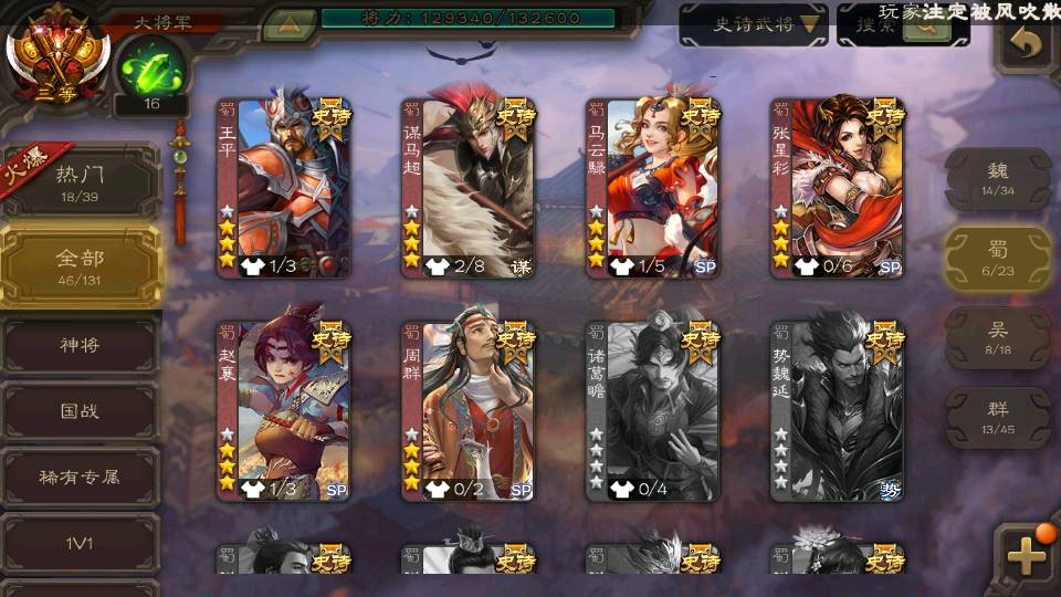 (蜀国):周群,谋马超,张星彩,马云騄,王平,赵襄