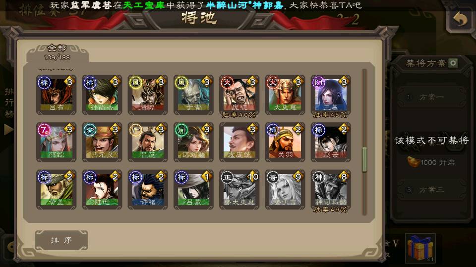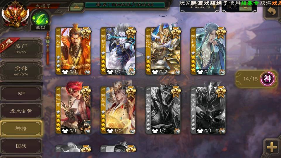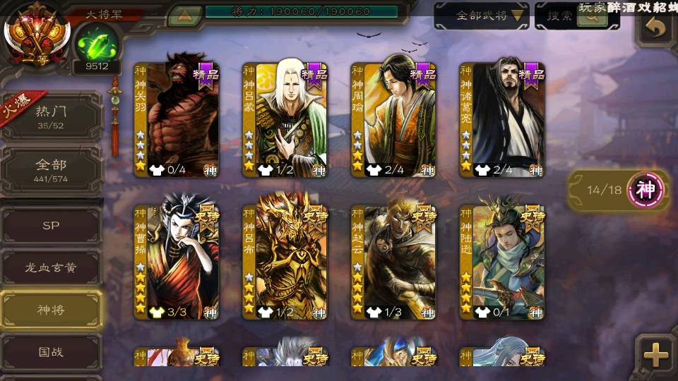 (神将):神荀彧,神郭嘉,神甘宁,神曹操,神孙策,神陆逊,神赵云,神吕布,神刘备,神张辽