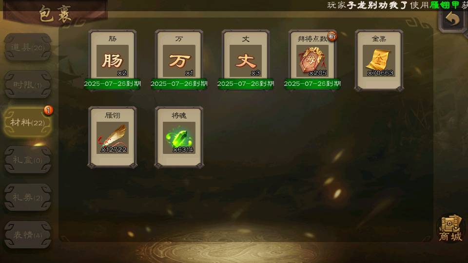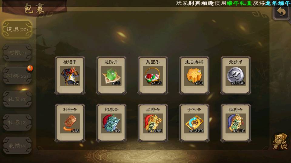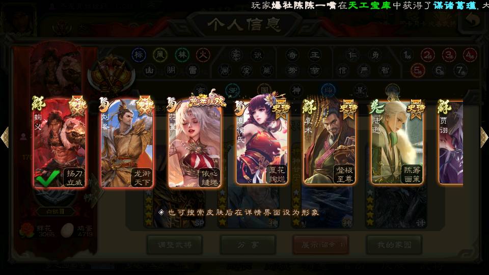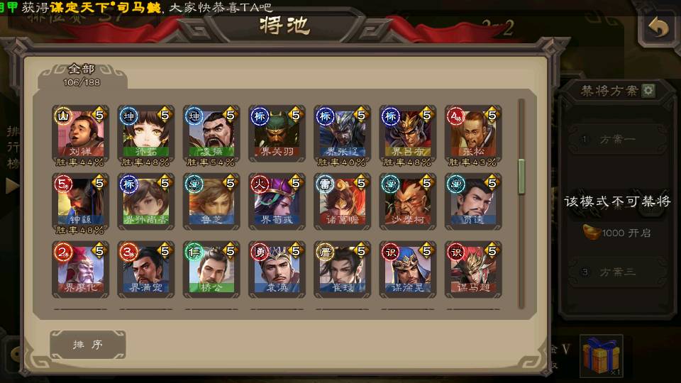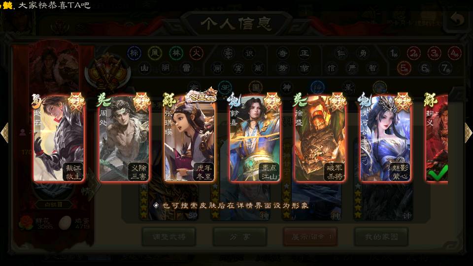 (蜀国):谋黄忠,诸葛瞻,谋夏侯氏,界黄忠,沙摩柯,花鬘,谋赵云,谋马超,张星彩,王平,马云騄,董允,赵襄