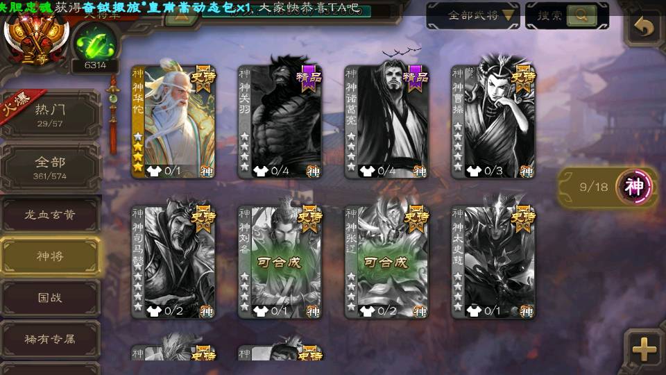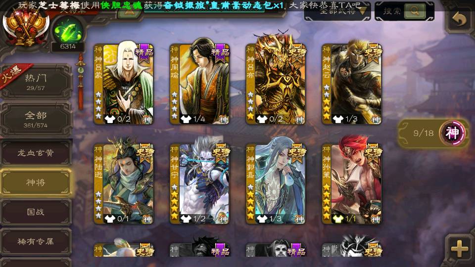 (神将):神郭嘉,神甘宁,神孙策,神华佗,神陆逊,神赵云,神吕布