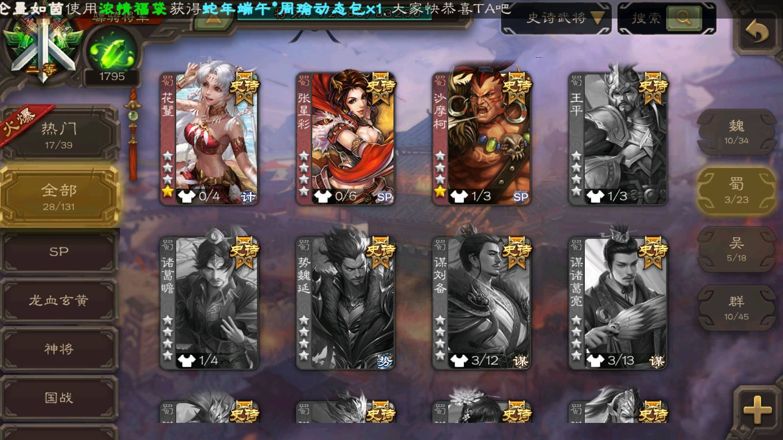 (蜀国):花鬘,沙摩柯,张星彩