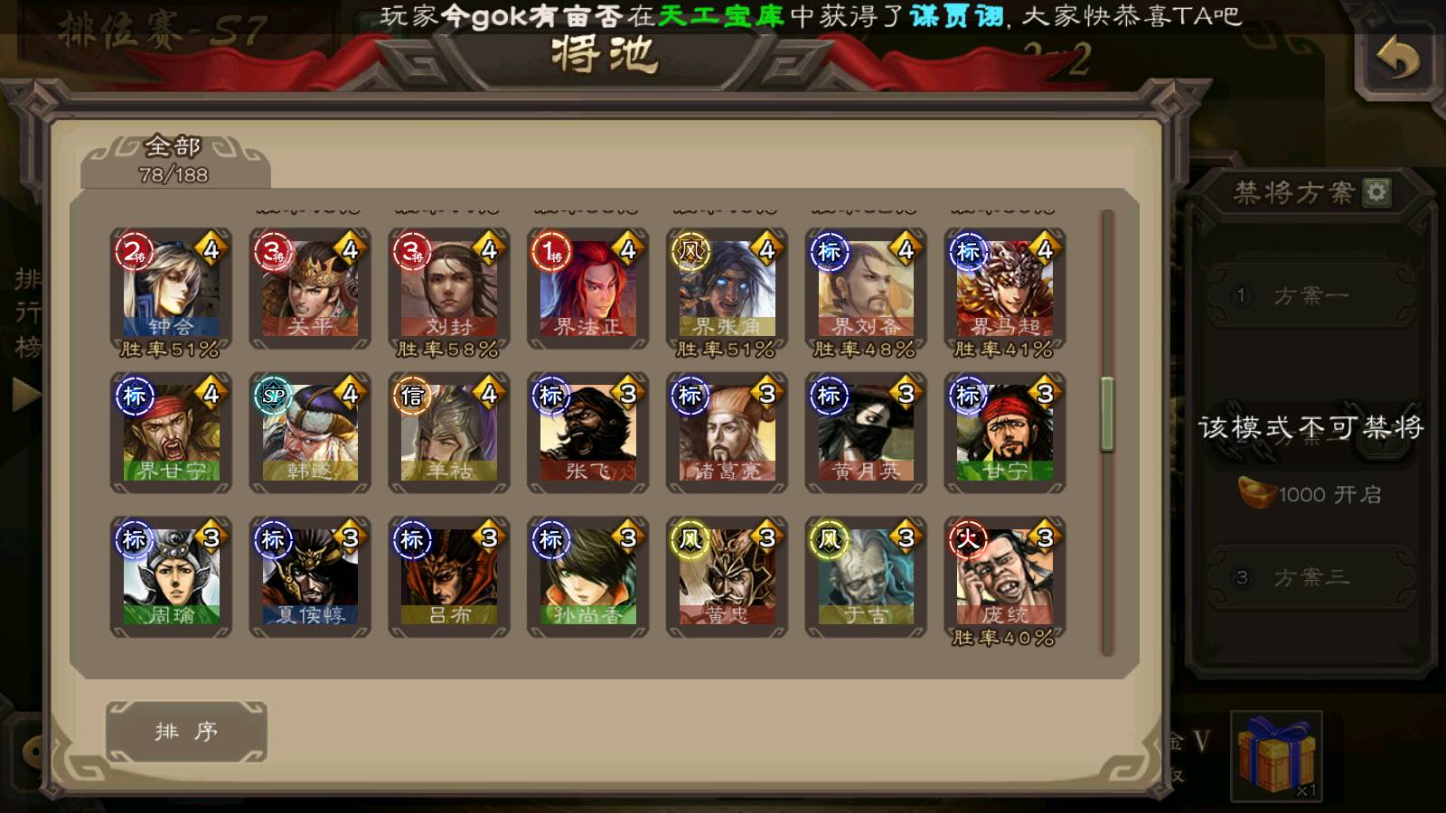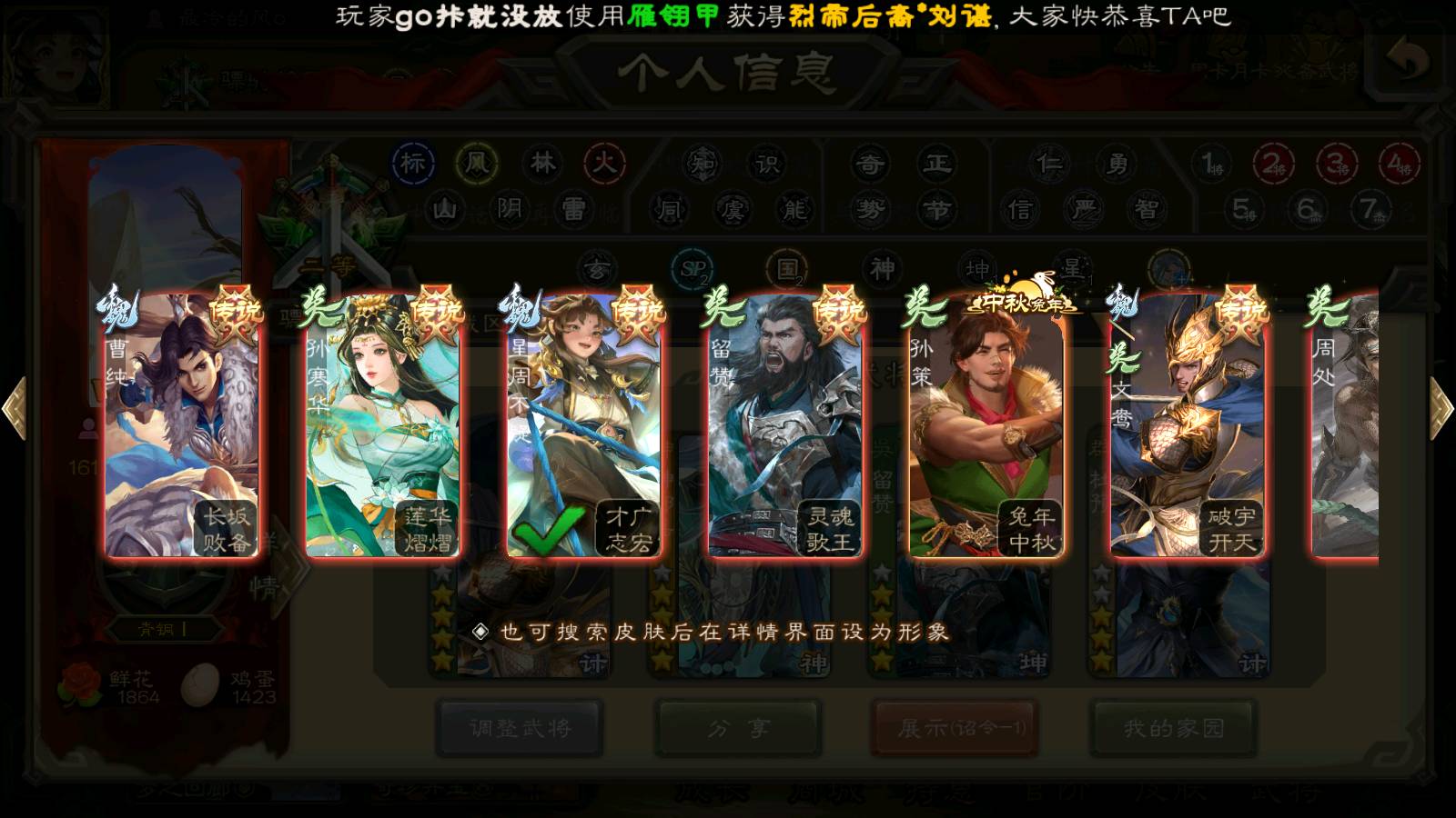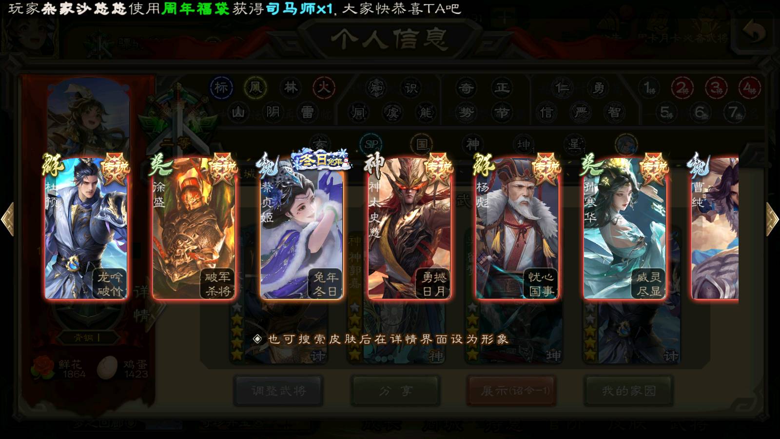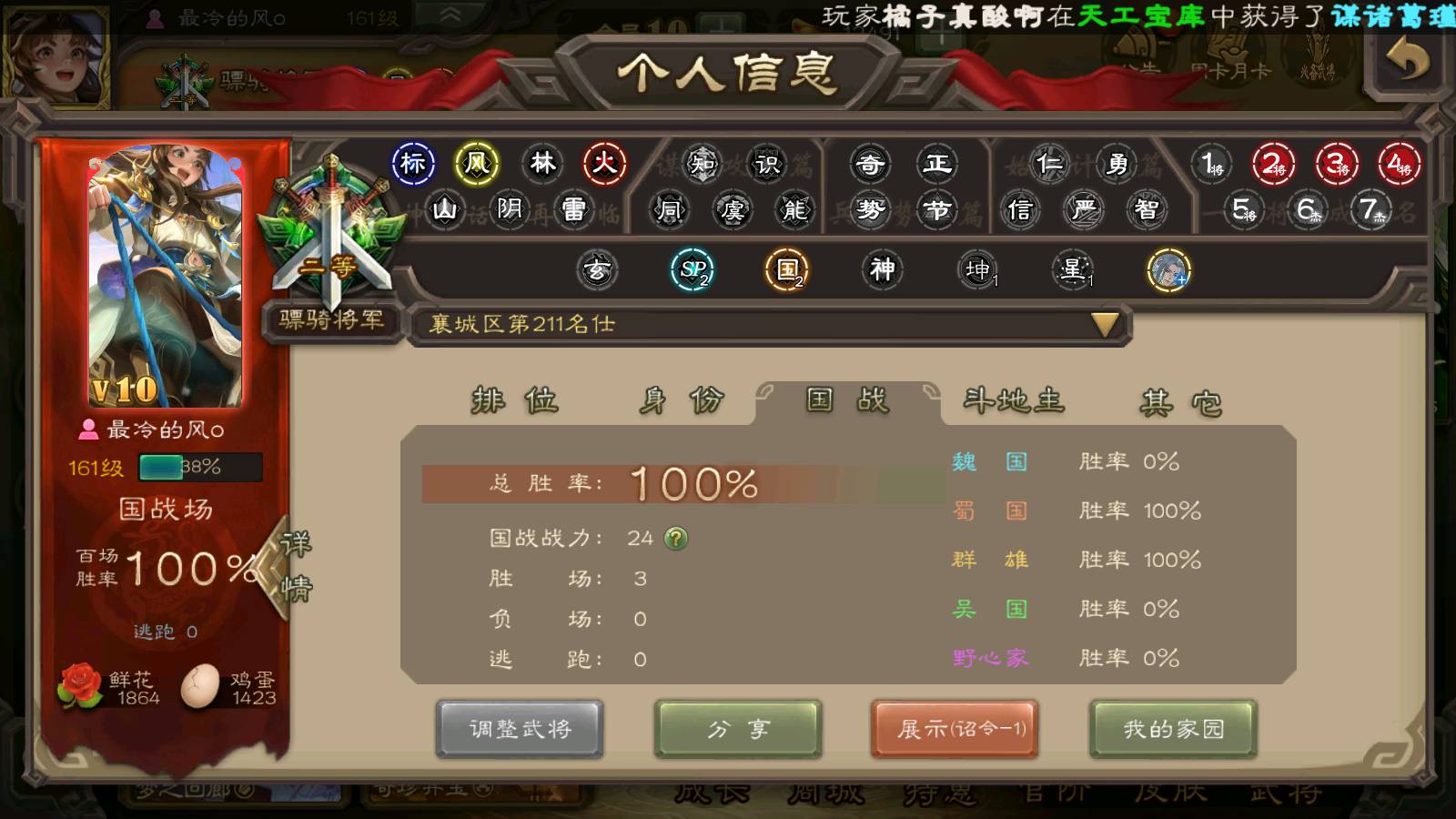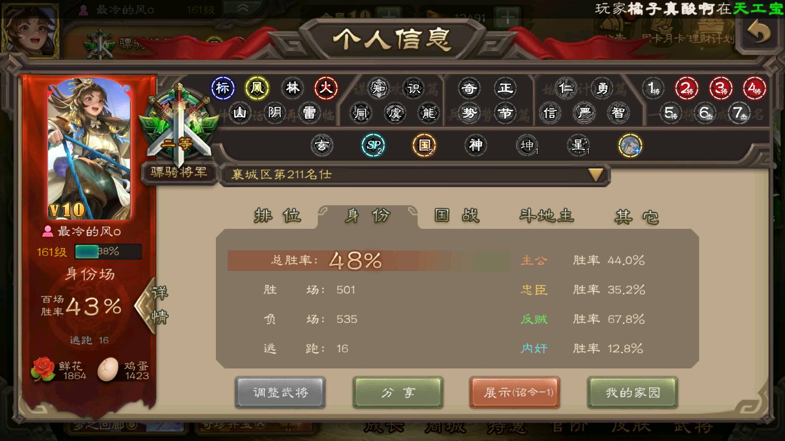 商品编号22122 全部皮肤294,动态皮肤18,全部武将272,排位武将78,国战武将81,史诗武将28,文鸯新回廊,孙寒华双回廊,杜预动皮,麴义动皮,元宝1.2w