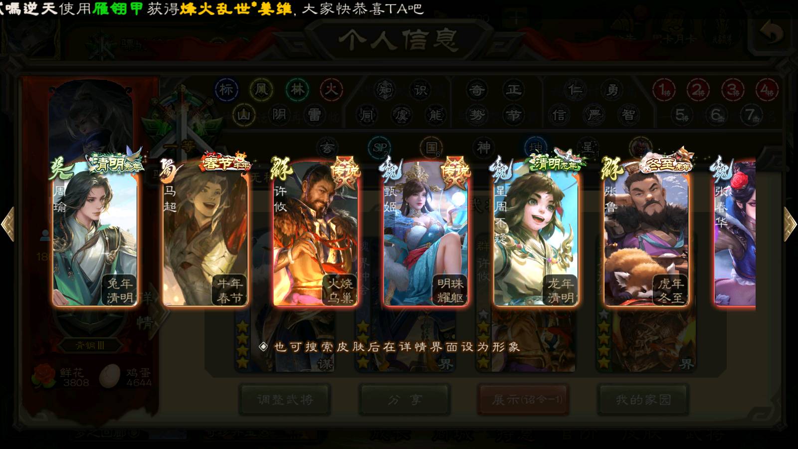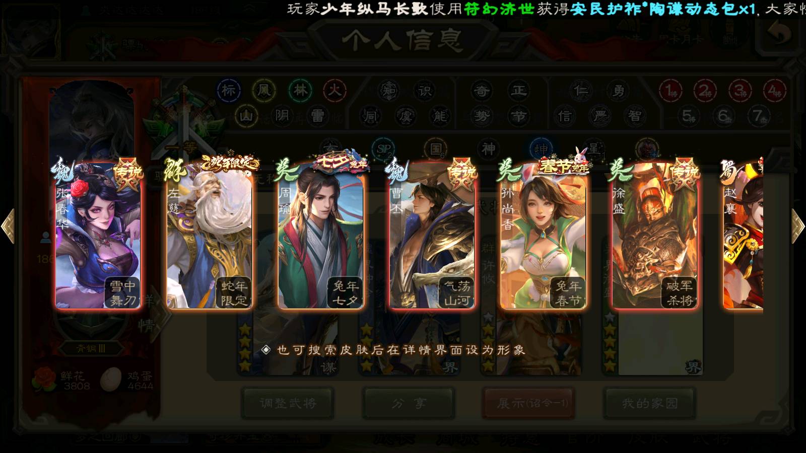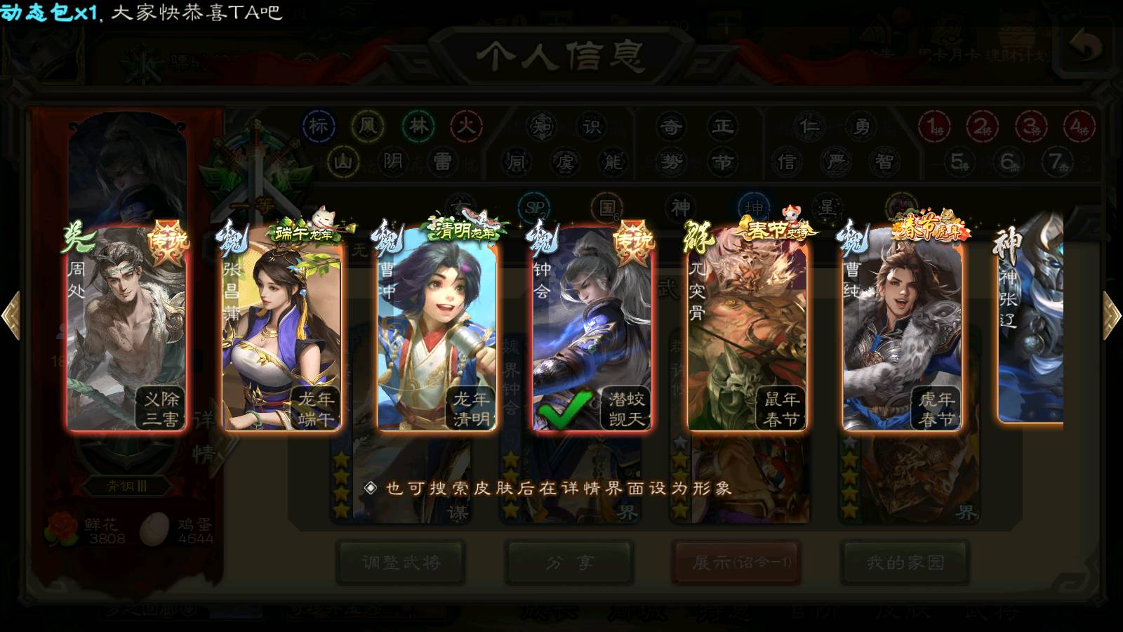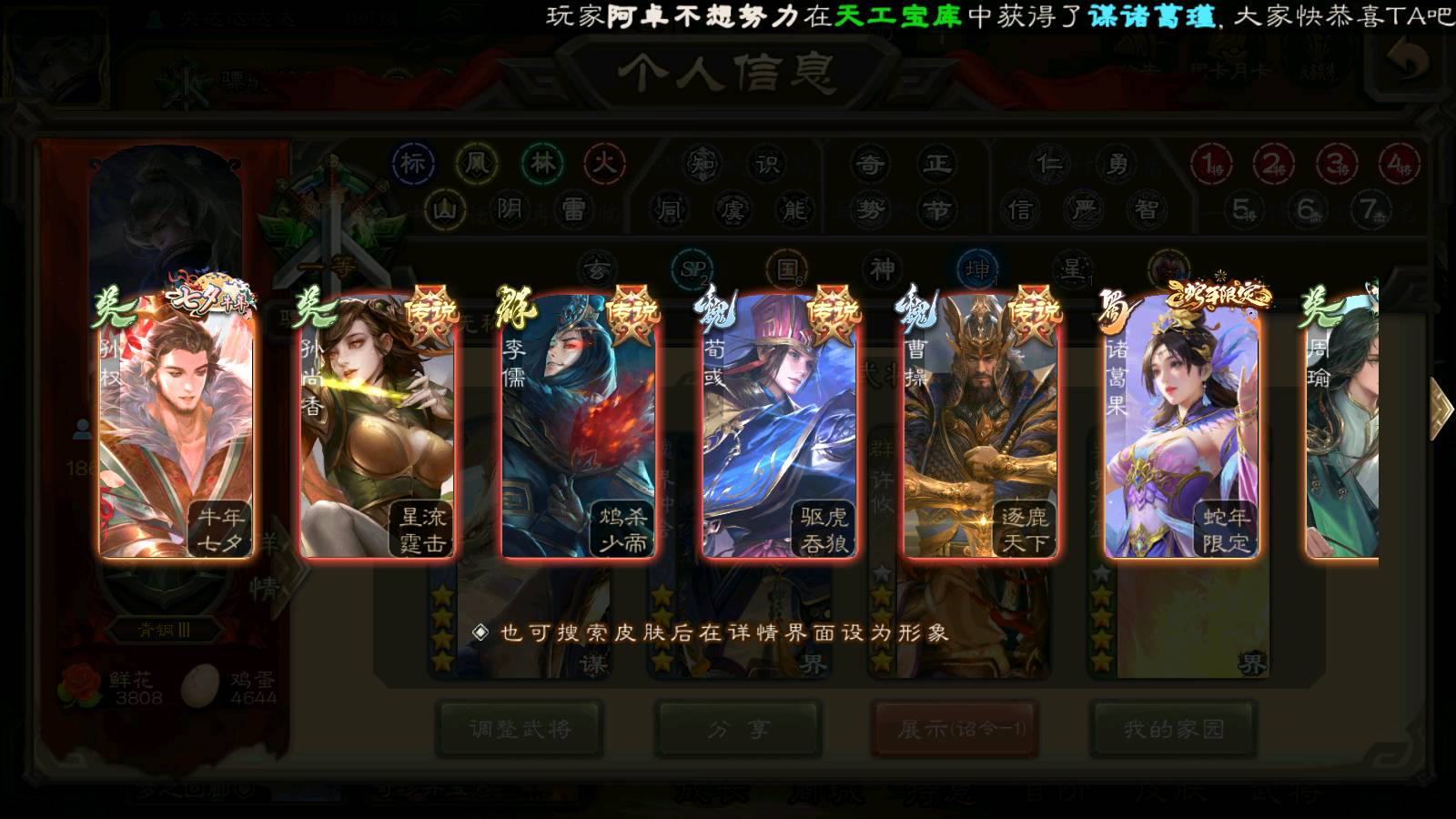 商品编号22127 全部皮肤379,动态皮肤31,全部武将310,排位武将82,国战武将86,史诗武将31,许攸动皮,界钟会回廊