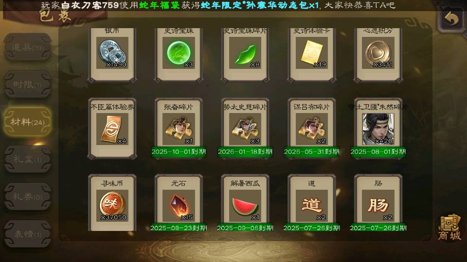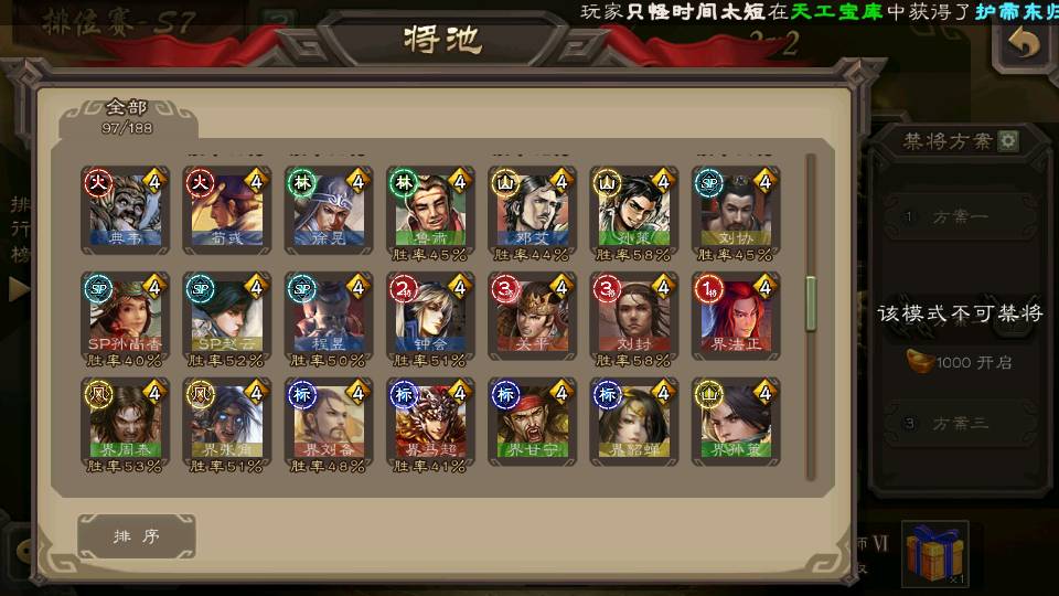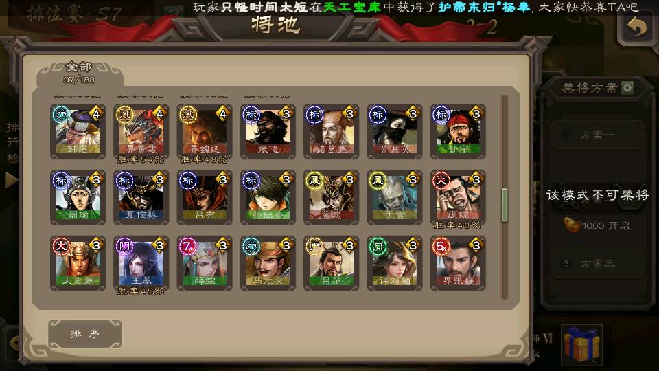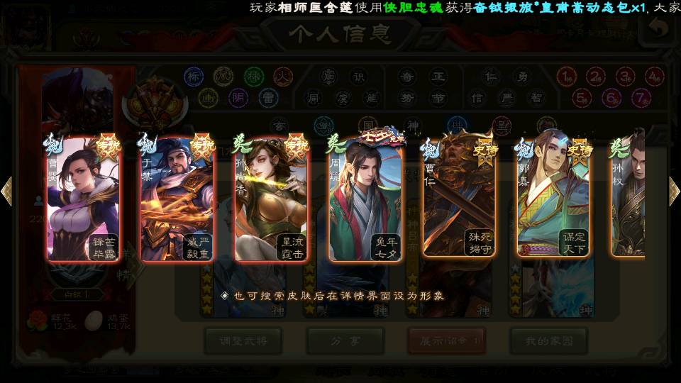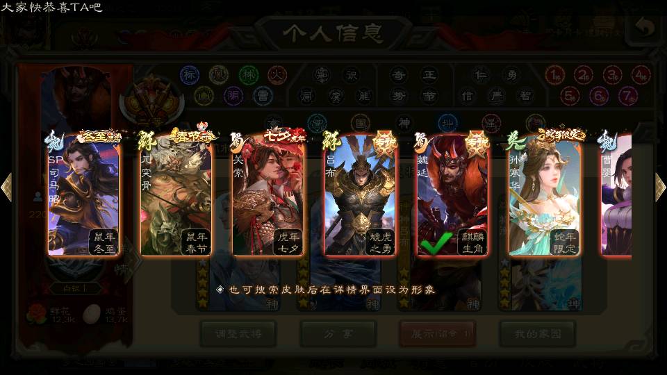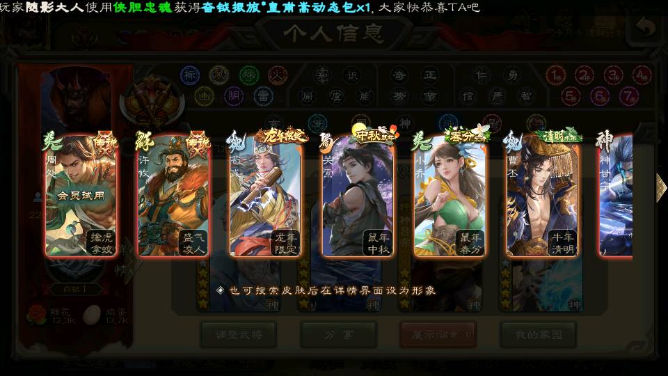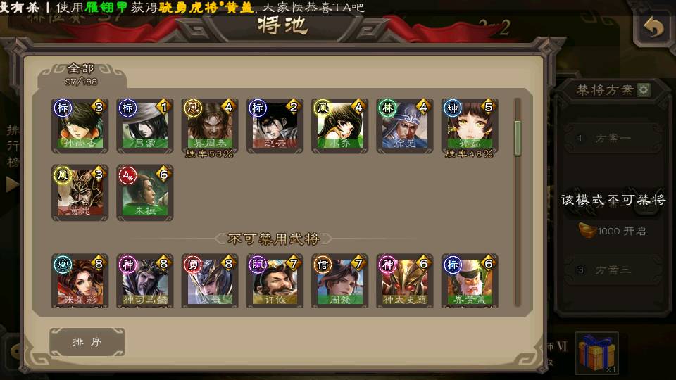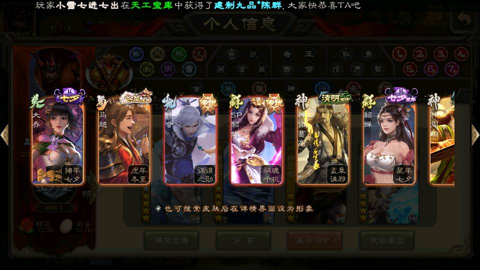 (蜀国):谋孙尚香,诸葛瞻,界黄忠,沙摩柯,花鬘,谋赵云,关索,张星彩,王平,马云騄,董允,赵襄