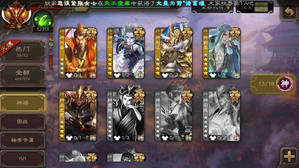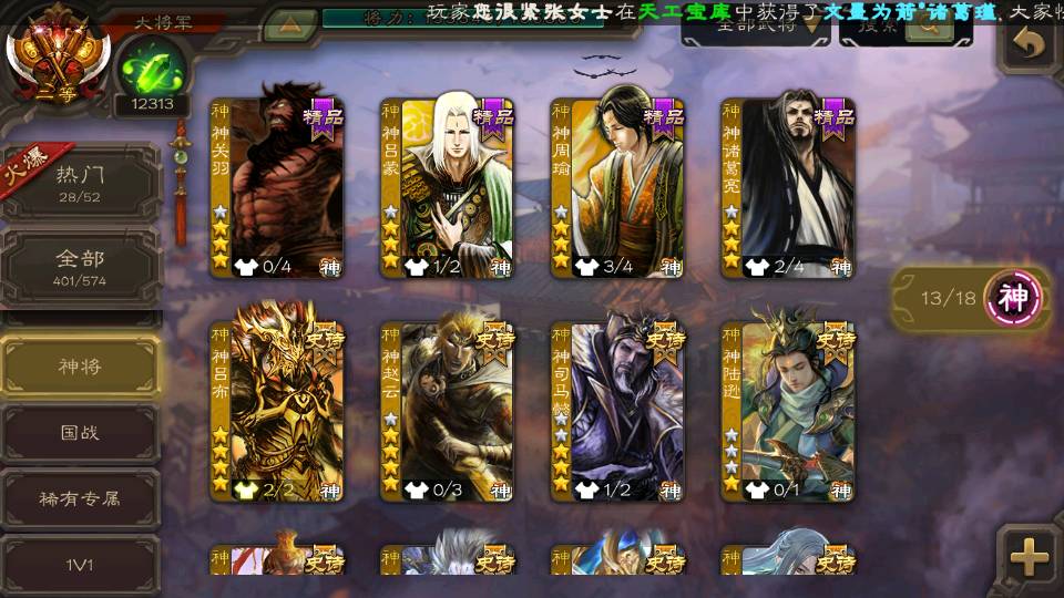 (神将):神郭嘉,神甘宁,神司马懿,神太史慈,神陆逊,神赵云,神吕布,神刘备,神张辽