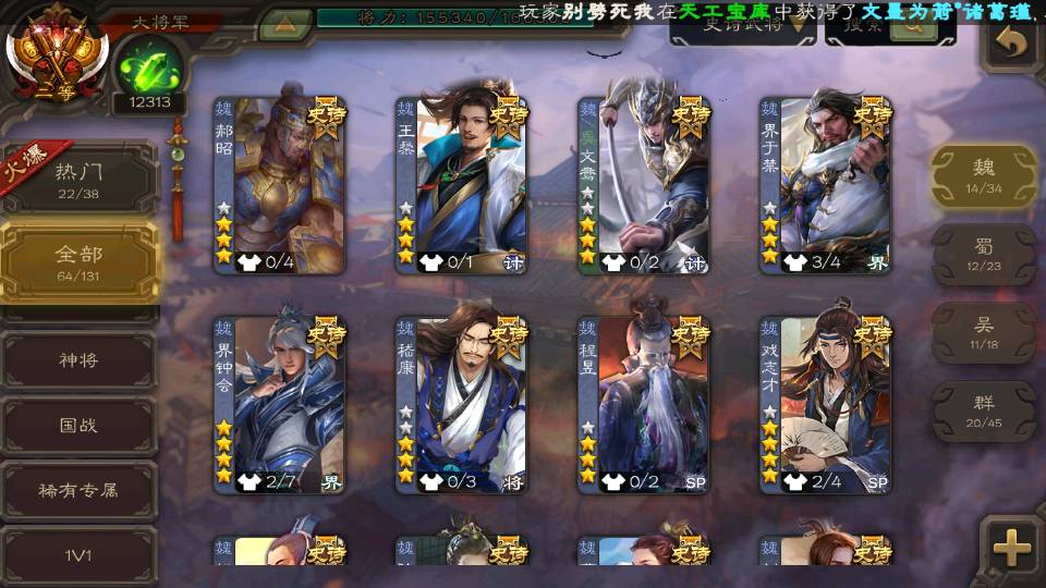 (魏国):曹婴,文鸯,戏志才,界钟会,界于禁,郝昭,王粲,星周不疑,程昱,曹纯,杨修,陈琳,嵇康,刘晔