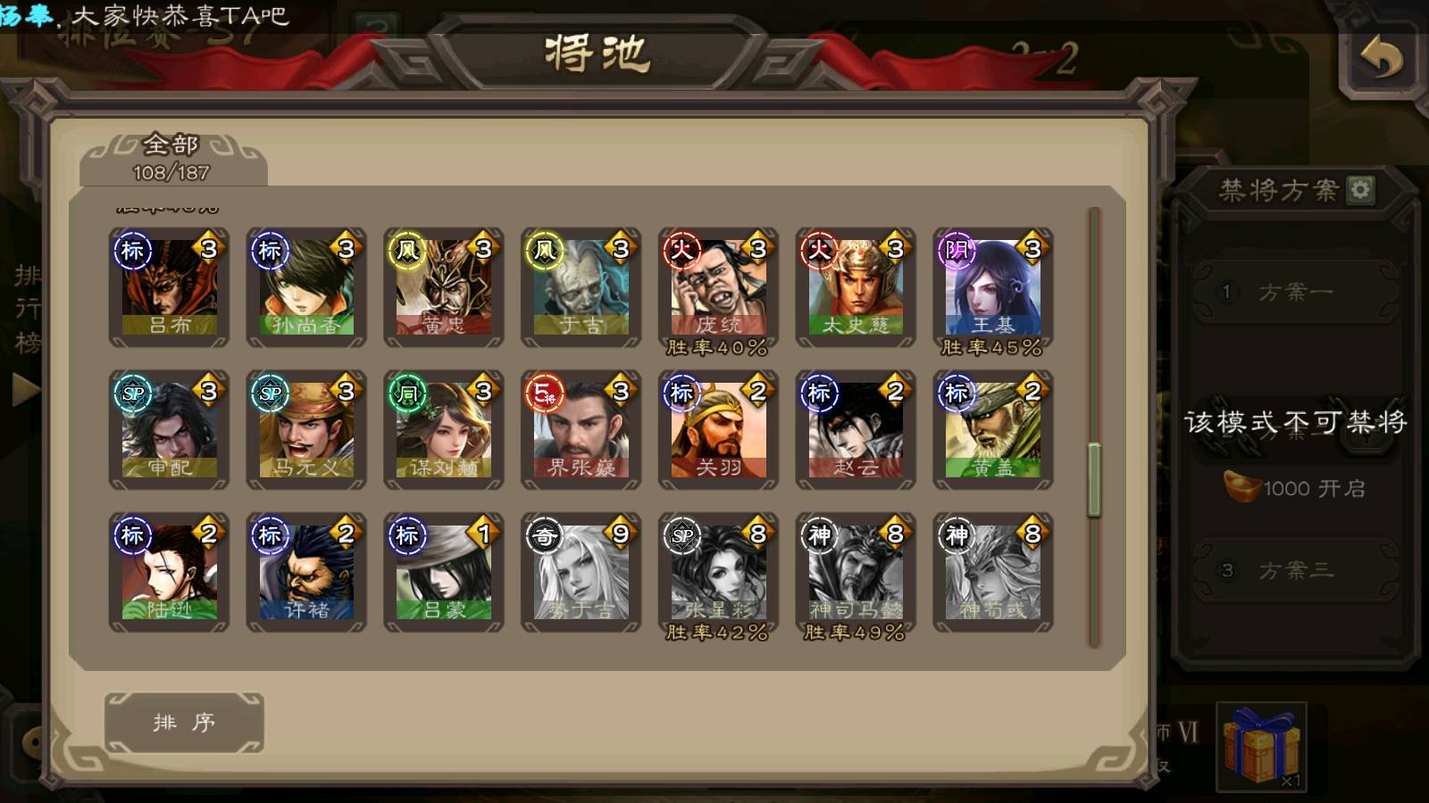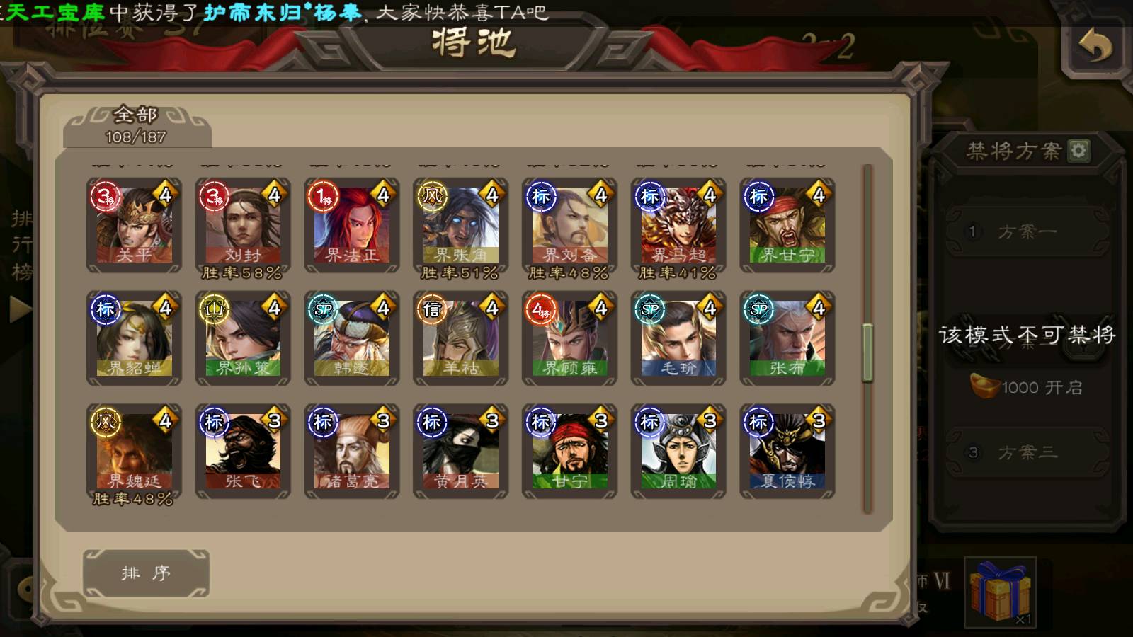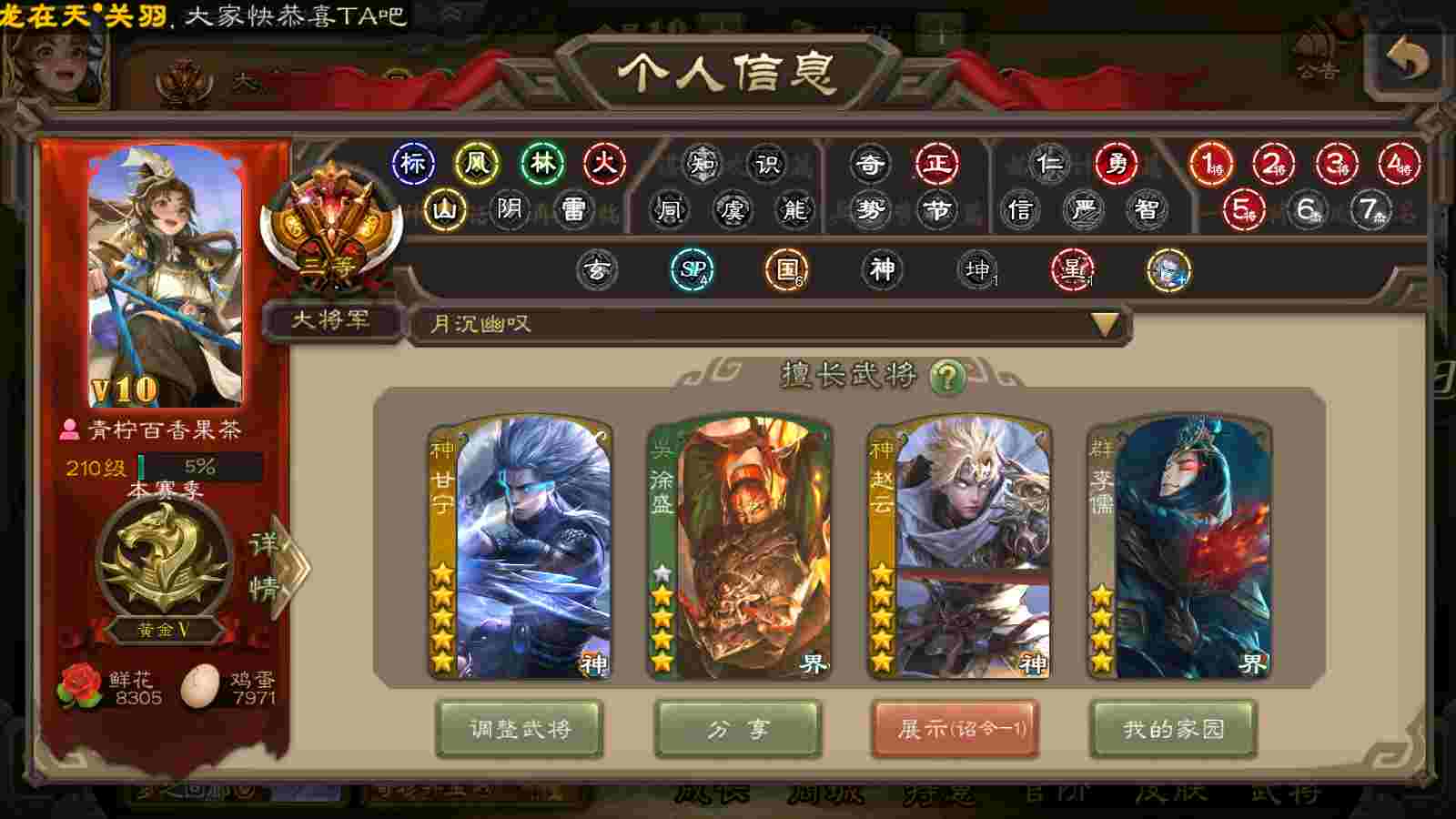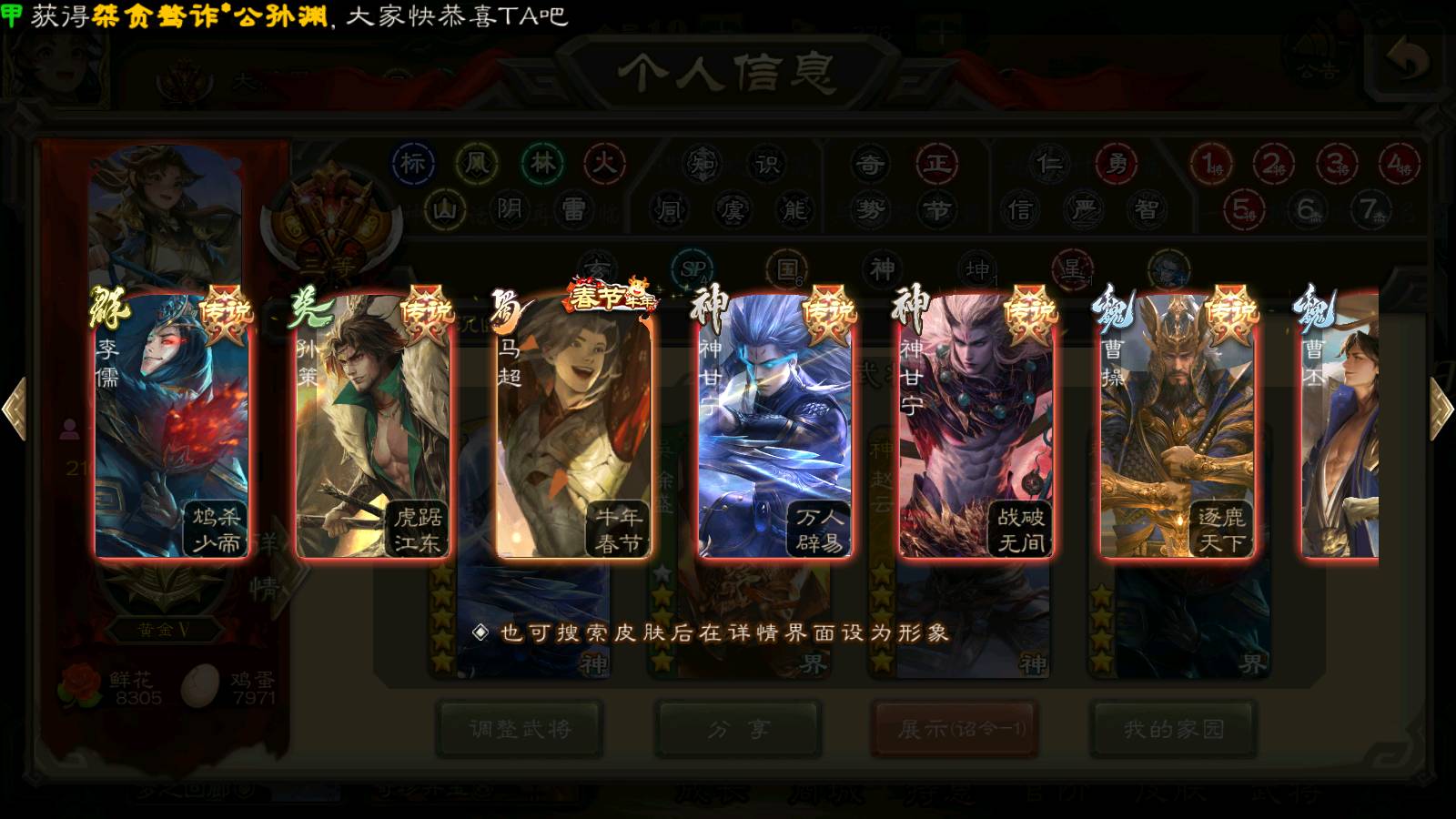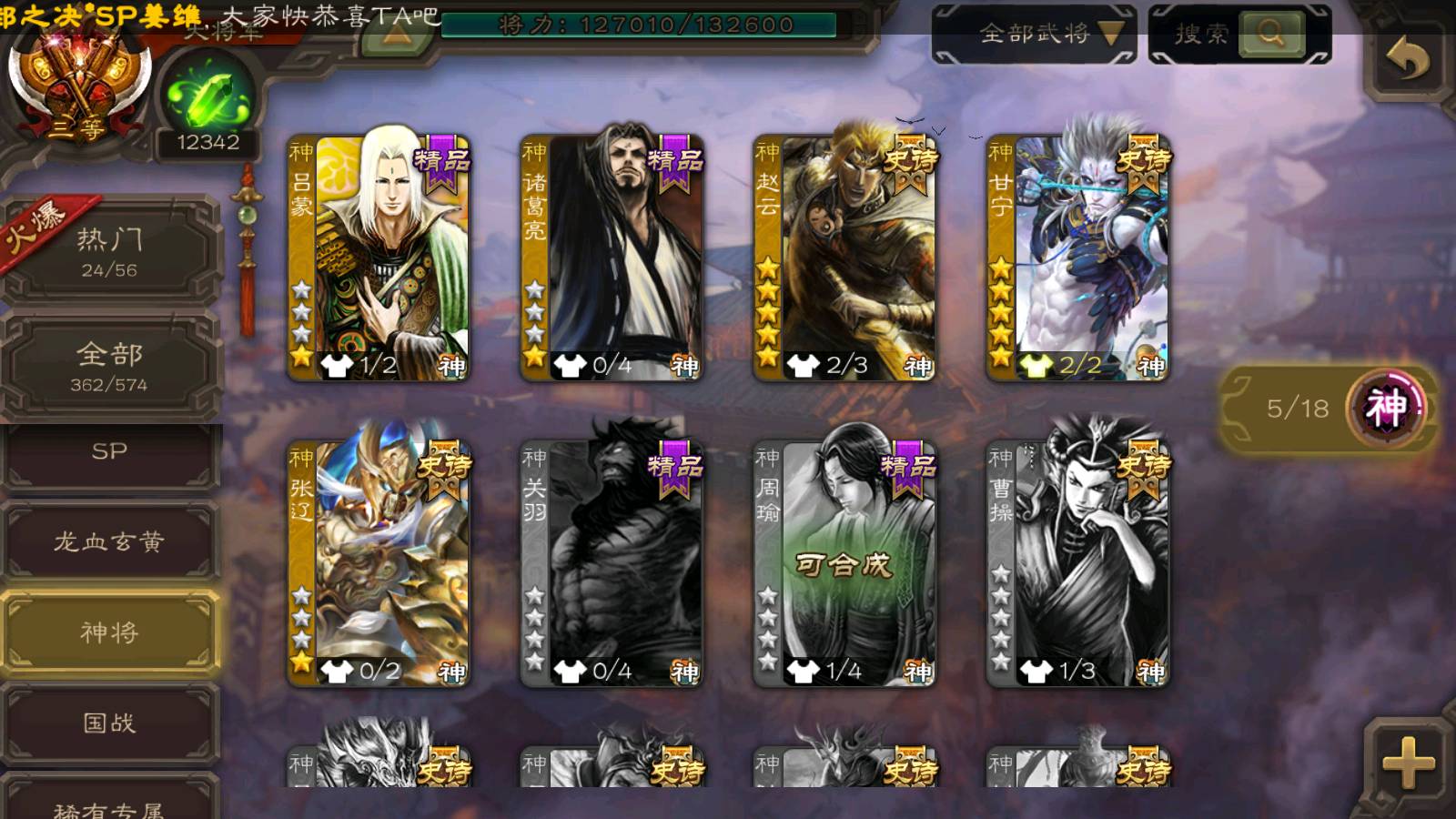 (群雄):南华老仙,界左慈,麴义,许攸,张让,界李儒,谋张角,公孙康,审配,星黄忠,左慈,沮授,兀突骨
