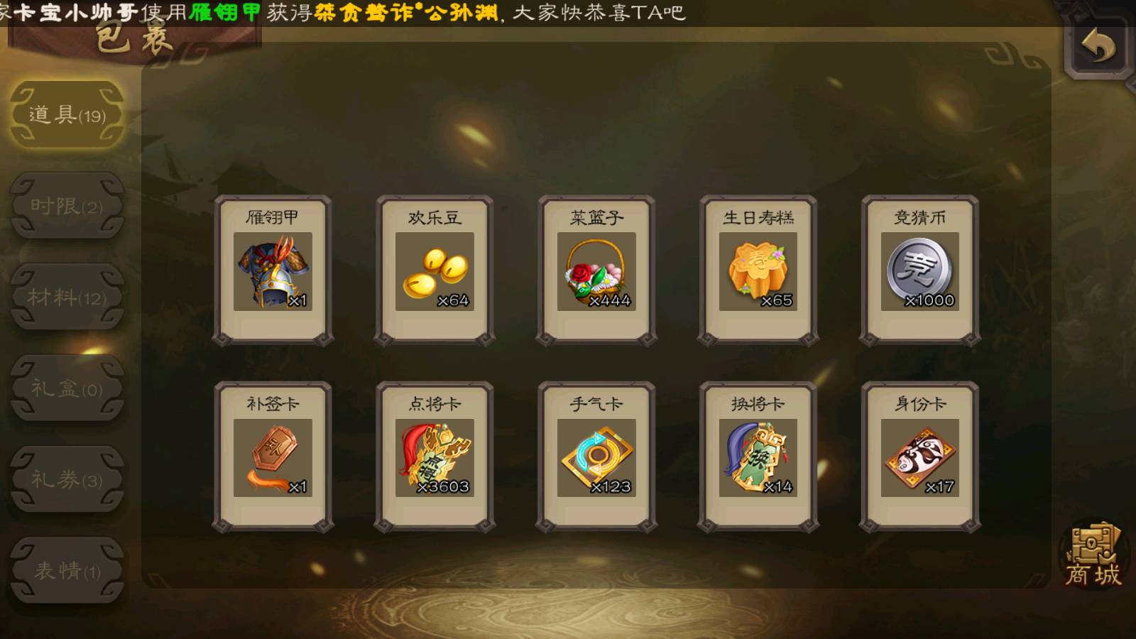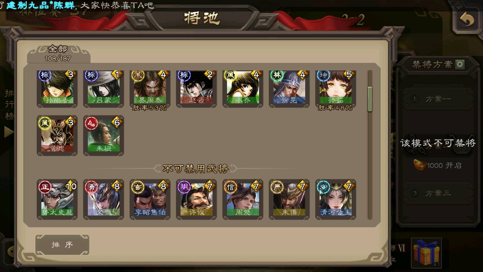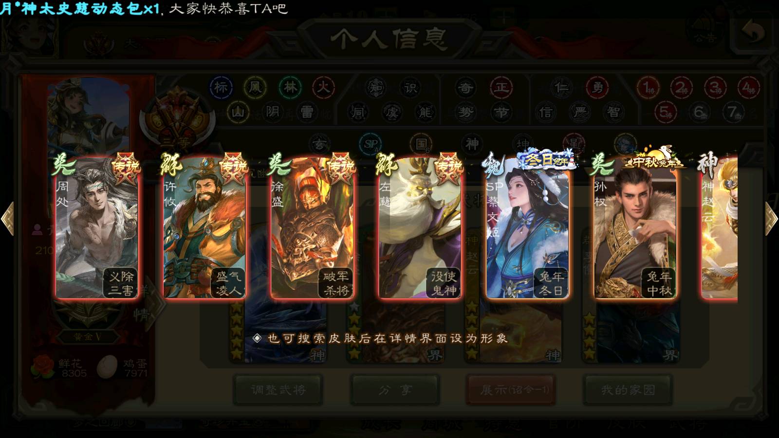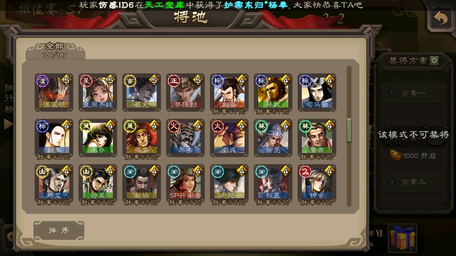(群雄):南华老仙,界左慈,麴义,许攸,张让,界李儒,谋张角,公孙康,审配,星黄忠,左慈,沮授,兀突骨