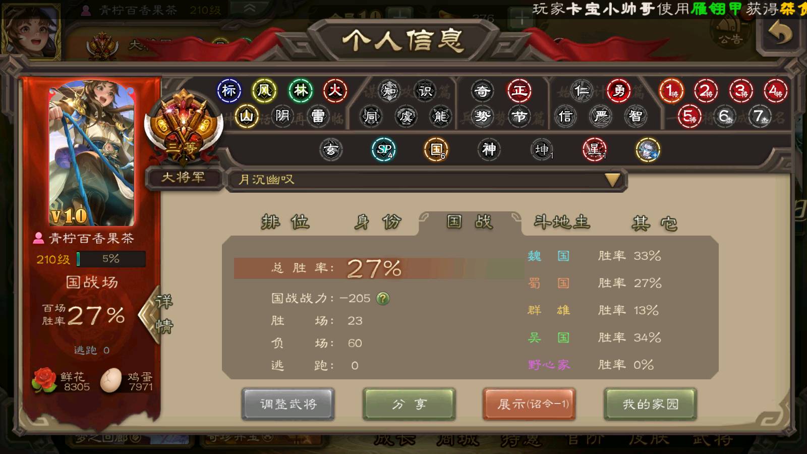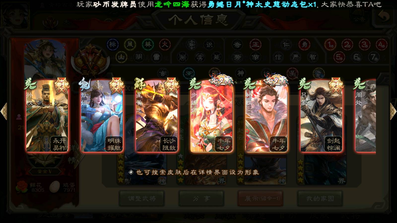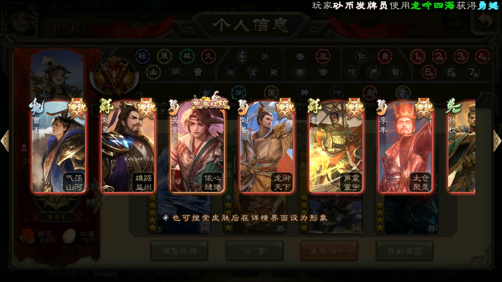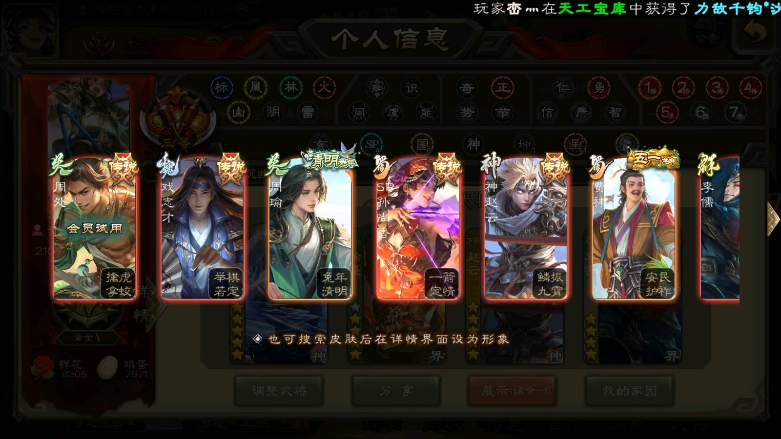 商品编号22139 全部皮肤470,动态皮肤40,全部武将362,排位武将108,国战武将89,史诗武将38,神甘宁回廊,神赵云回廊,文鸯动皮,雁翎10.5w,将魂1.2w
