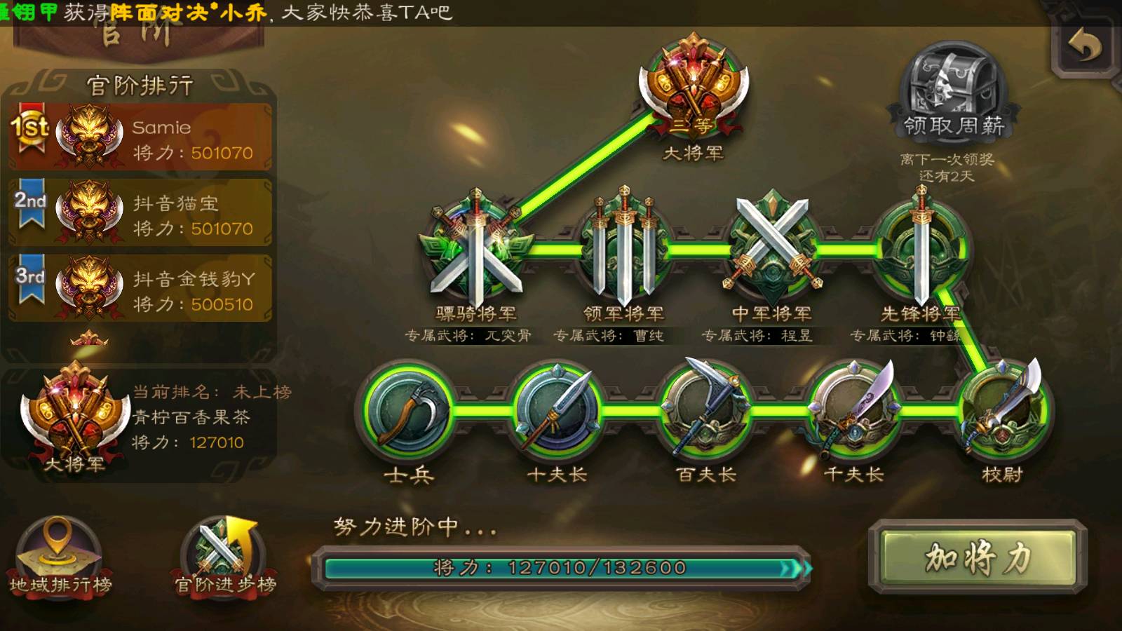 官阶:大将军