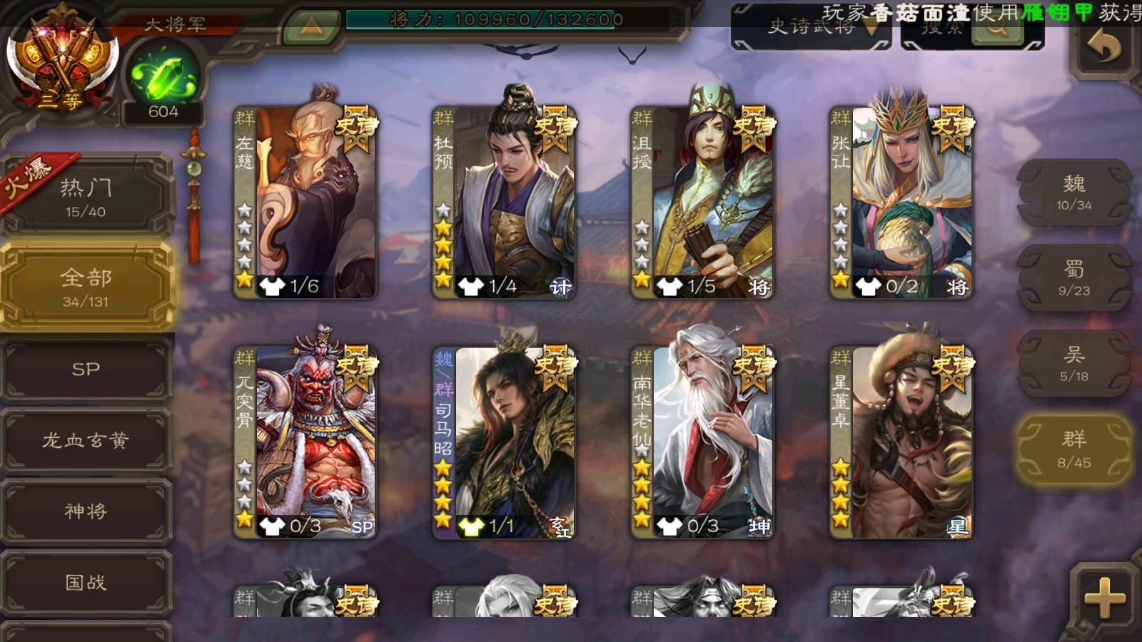 (群雄):杜预,南华老仙,星董卓,司马昭,张让,左慈,沮授,兀突骨