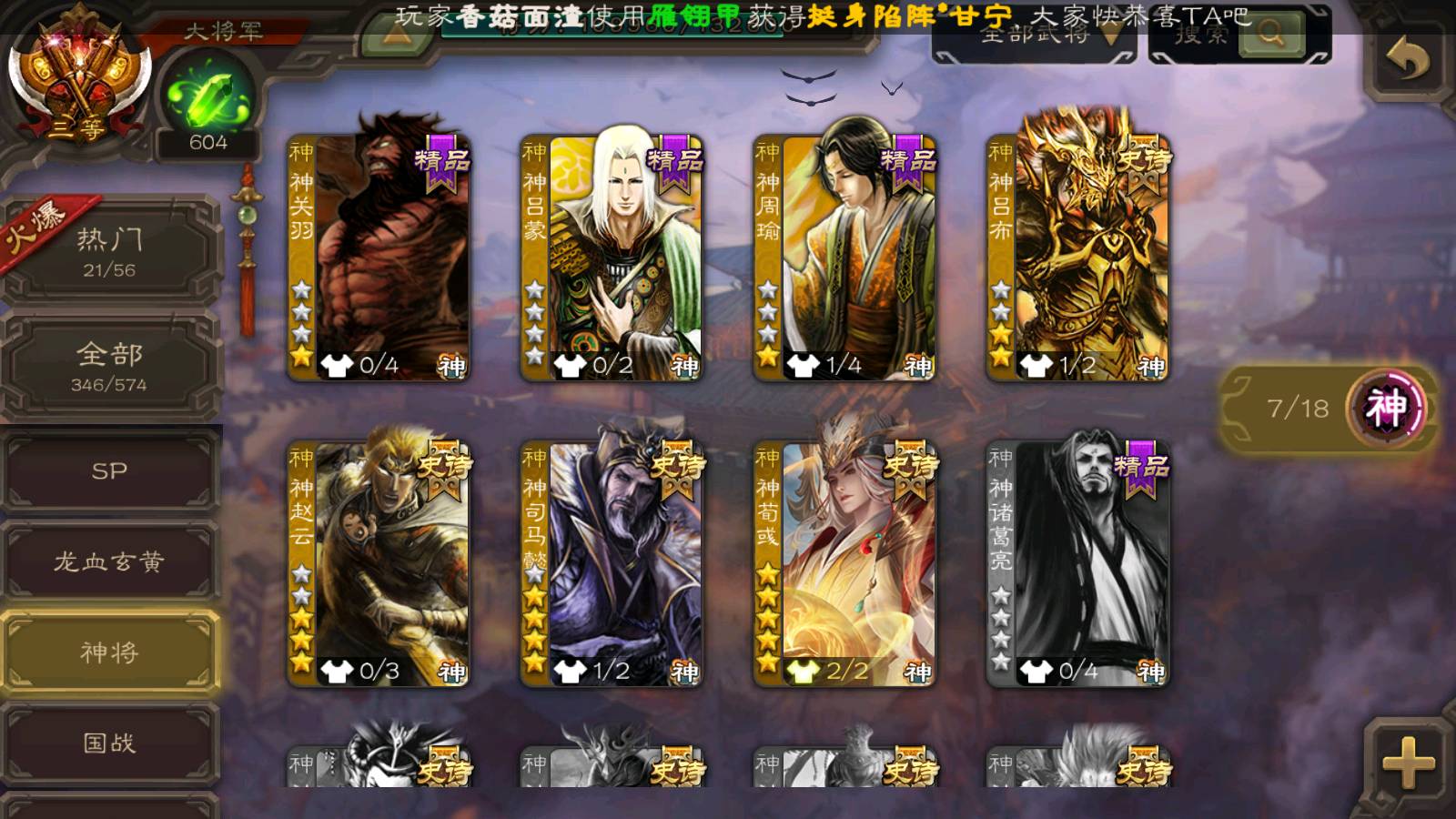 (神将):神荀彧,神司马懿,神赵云,神吕布