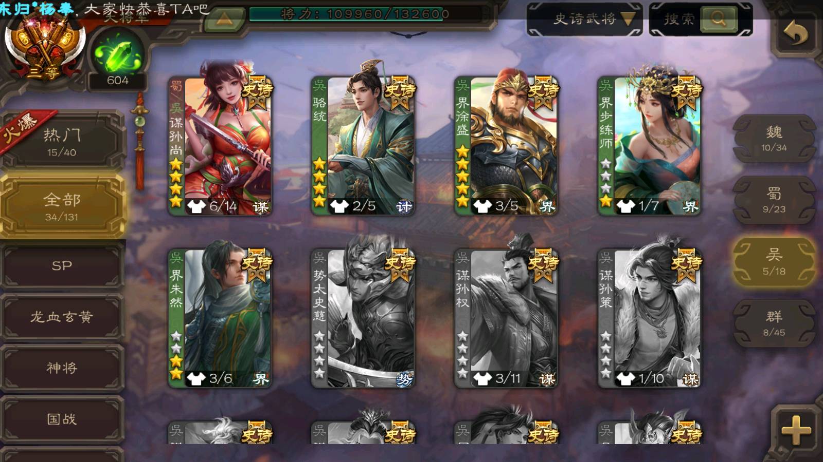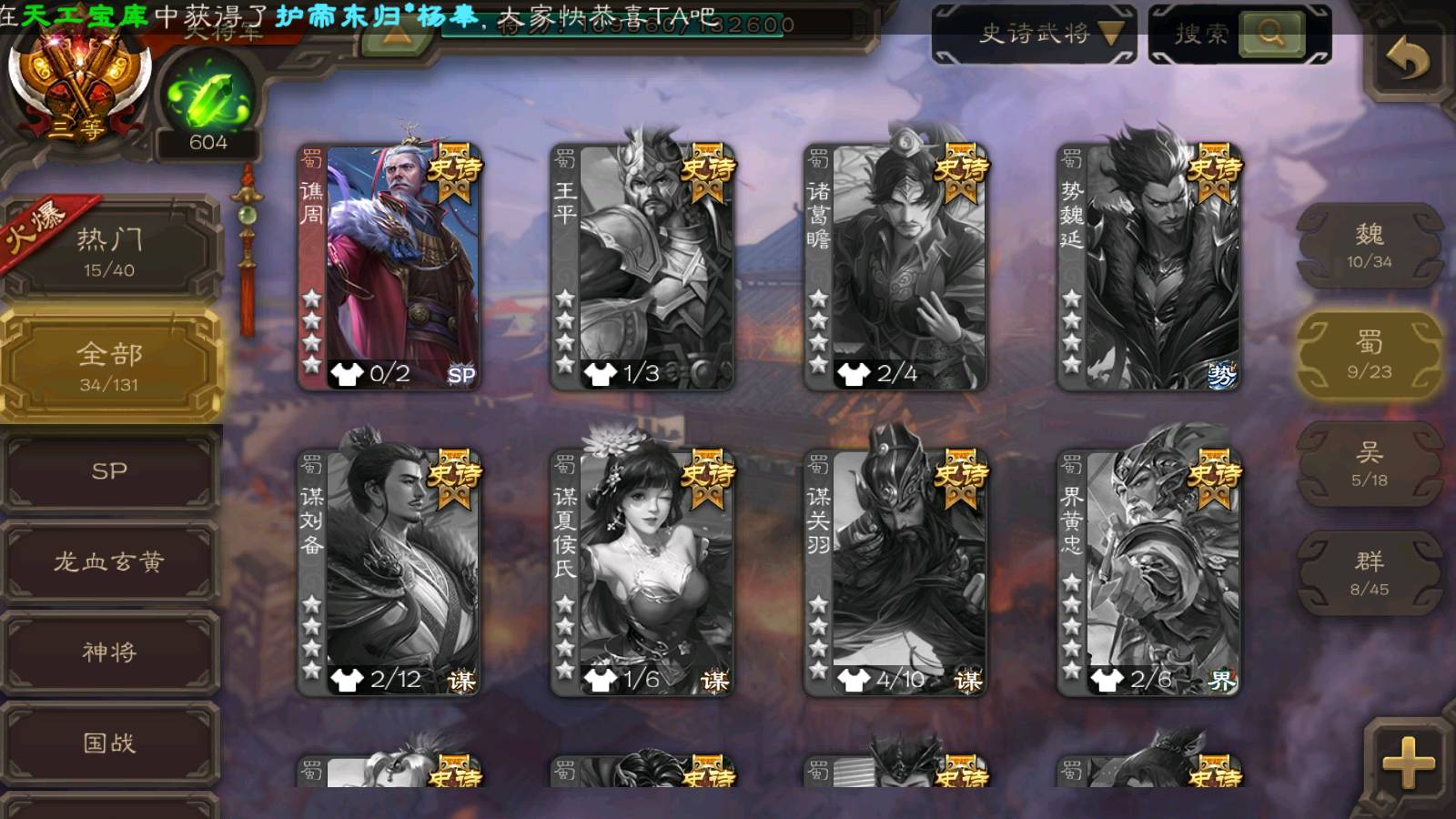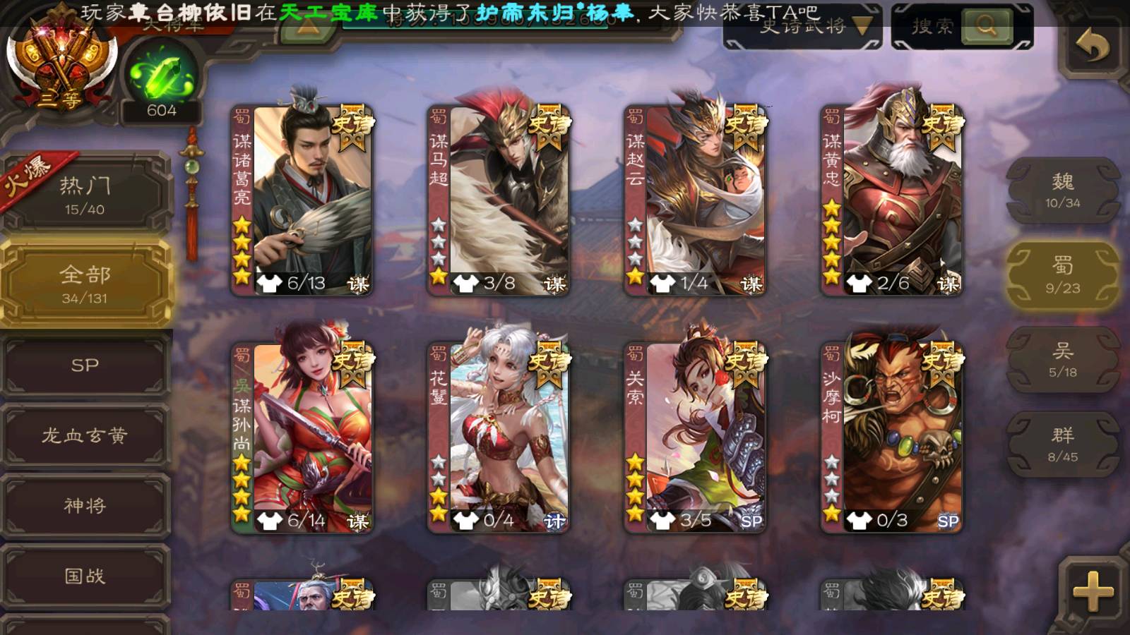(蜀国):谋黄忠,谋诸葛亮,谋孙尚香,谋赵云,花鬘,沙摩柯,谯周,谋马超,关索