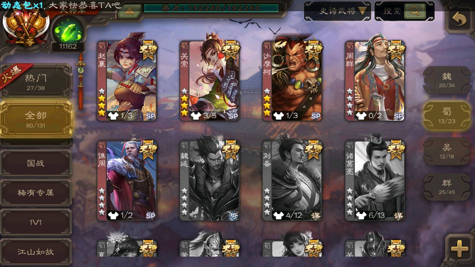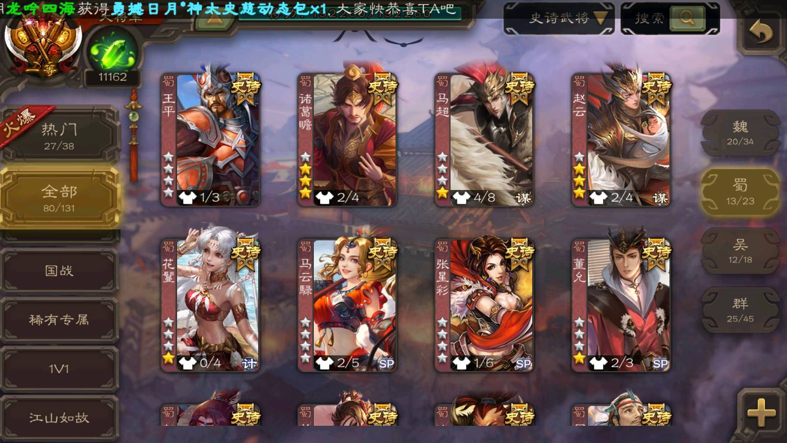 (蜀国):周群,诸葛瞻,谋赵云,花鬘,沙摩柯,谯周,谋马超,关索,张星彩,王平,马云騄,董允,赵襄