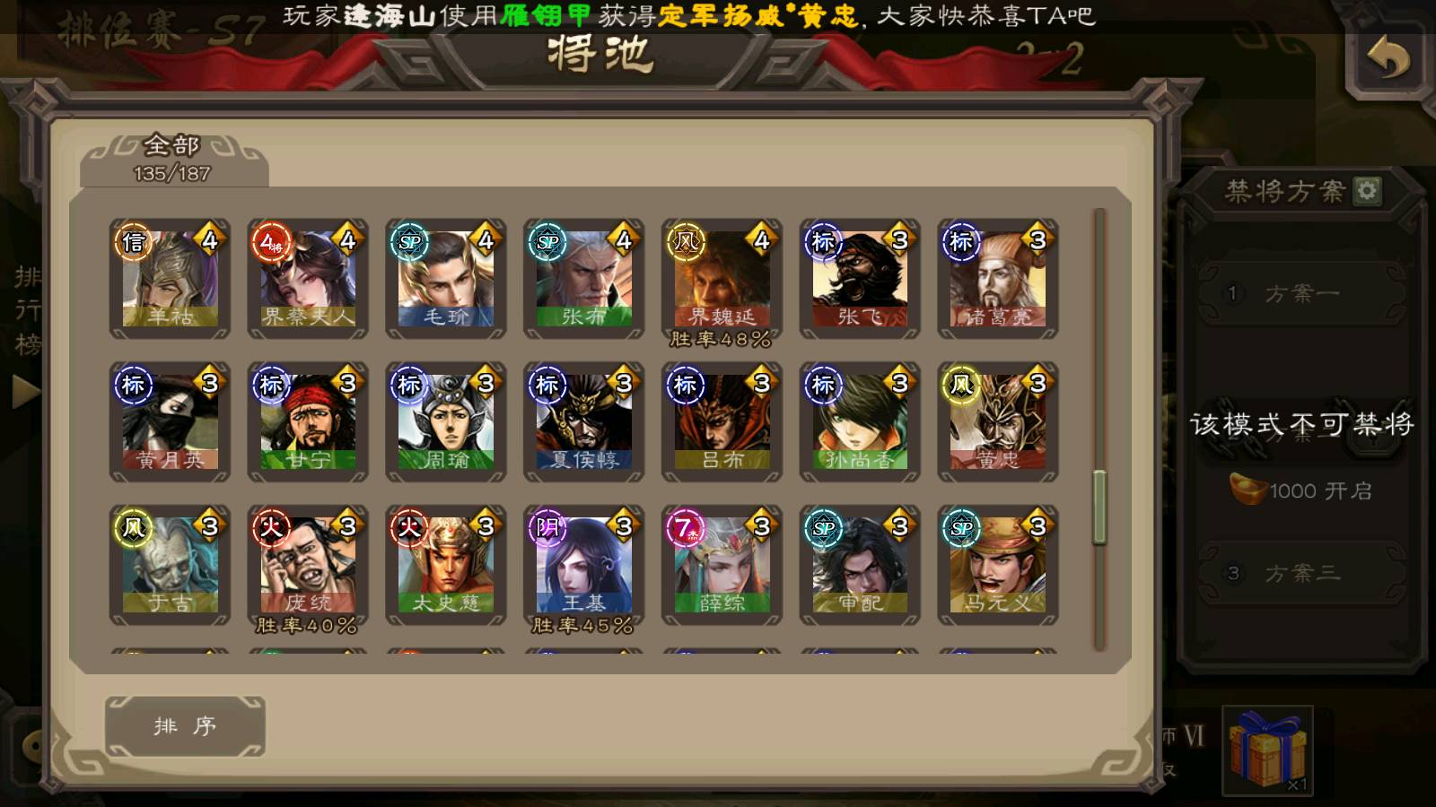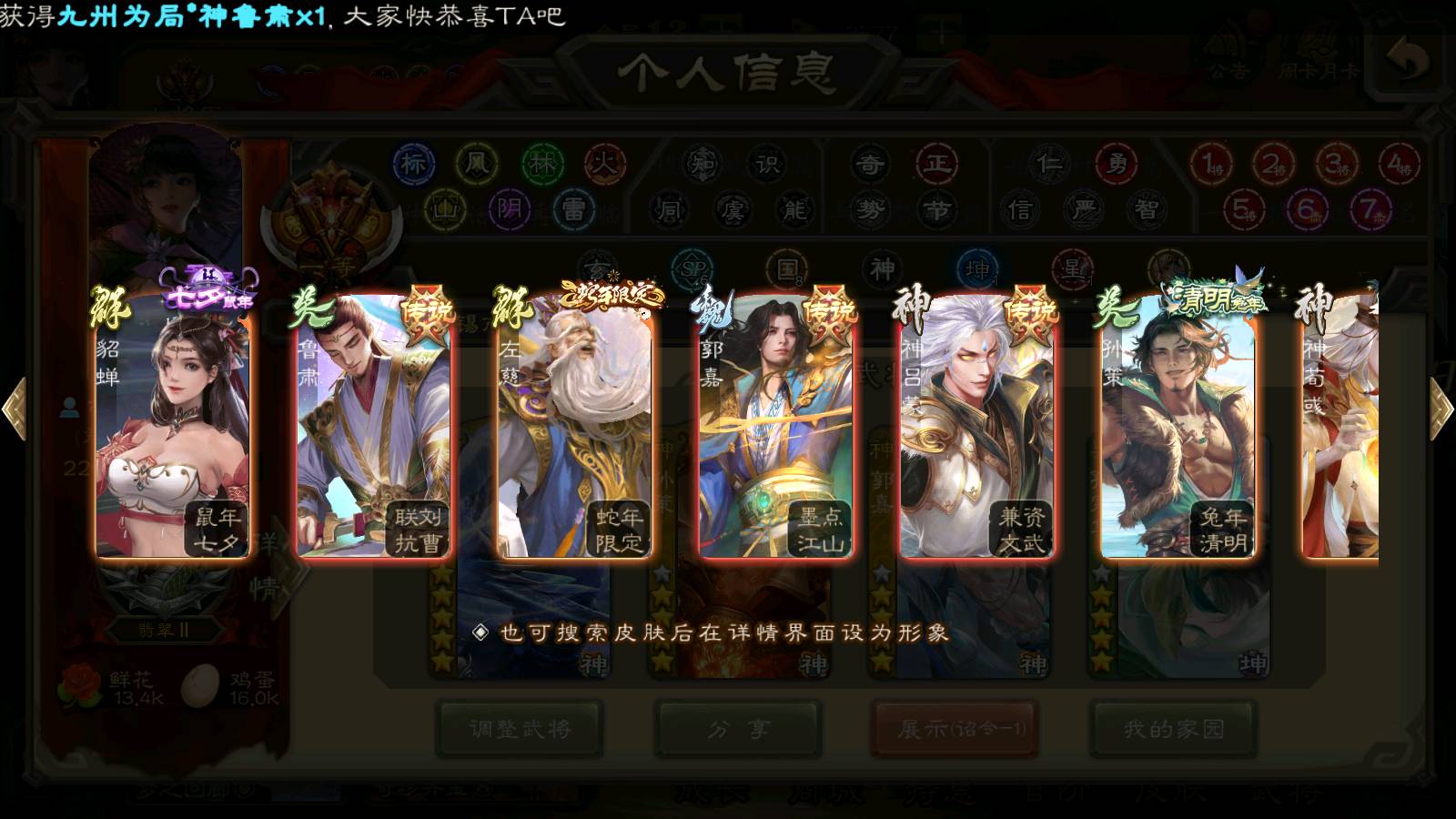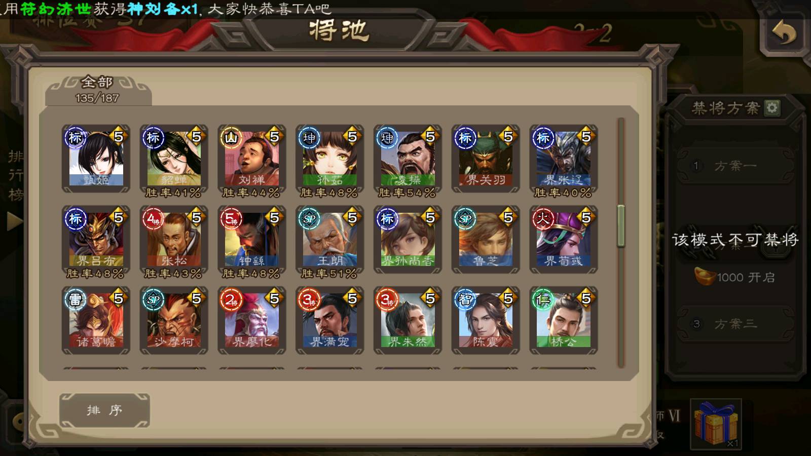 (群雄):刘焉,杜预,界左慈,南华老仙,麴义,许攸,谋貂蝉,张让,界李儒,苏飞,庞德公,星甘宁,势于吉,卑弥呼,士燮,谋张角,王允,公孙康,刘璋,郑玄,陶谦,审配,左慈,沮授,兀突骨