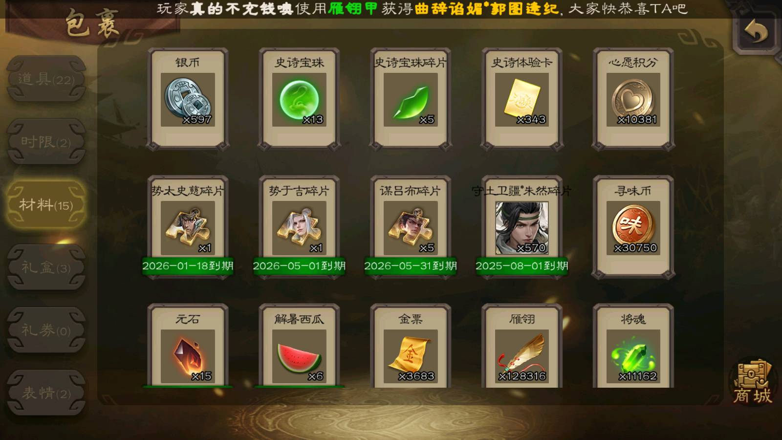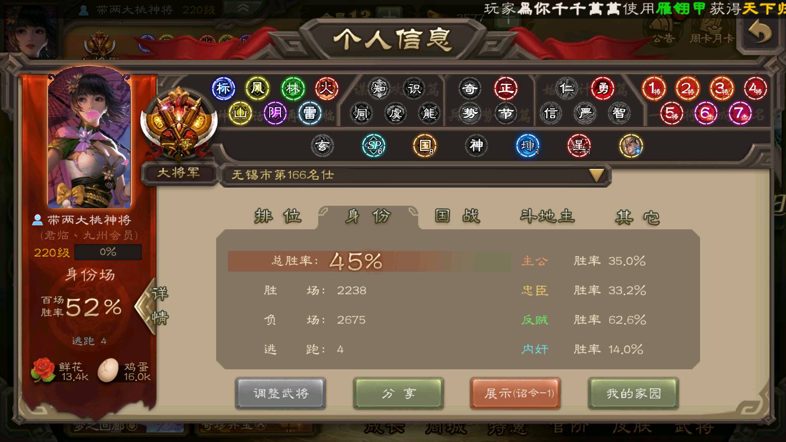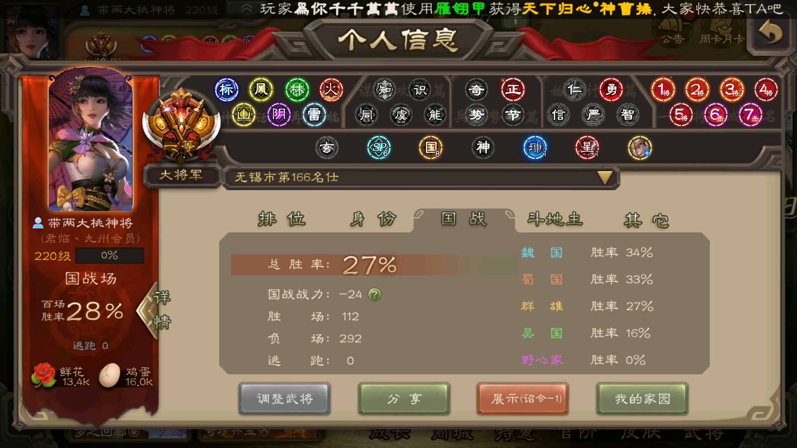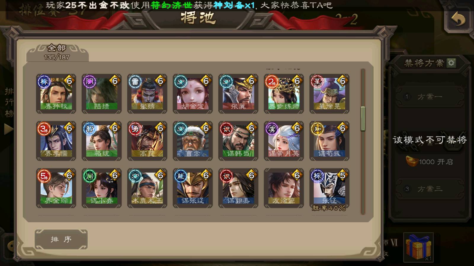 (群雄):刘焉,杜预,界左慈,南华老仙,麴义,许攸,谋貂蝉,张让,界李儒,苏飞,庞德公,星甘宁,势于吉,卑弥呼,士燮,谋张角,王允,公孙康,刘璋,郑玄,陶谦,审配,左慈,沮授,兀突骨