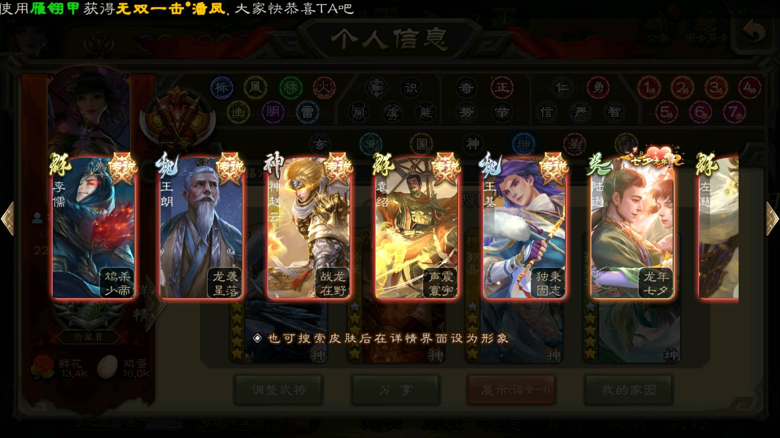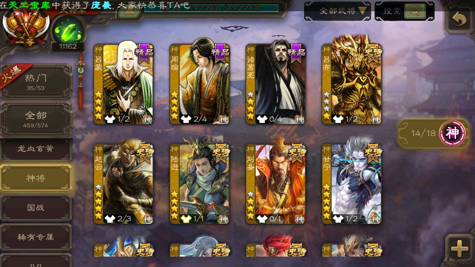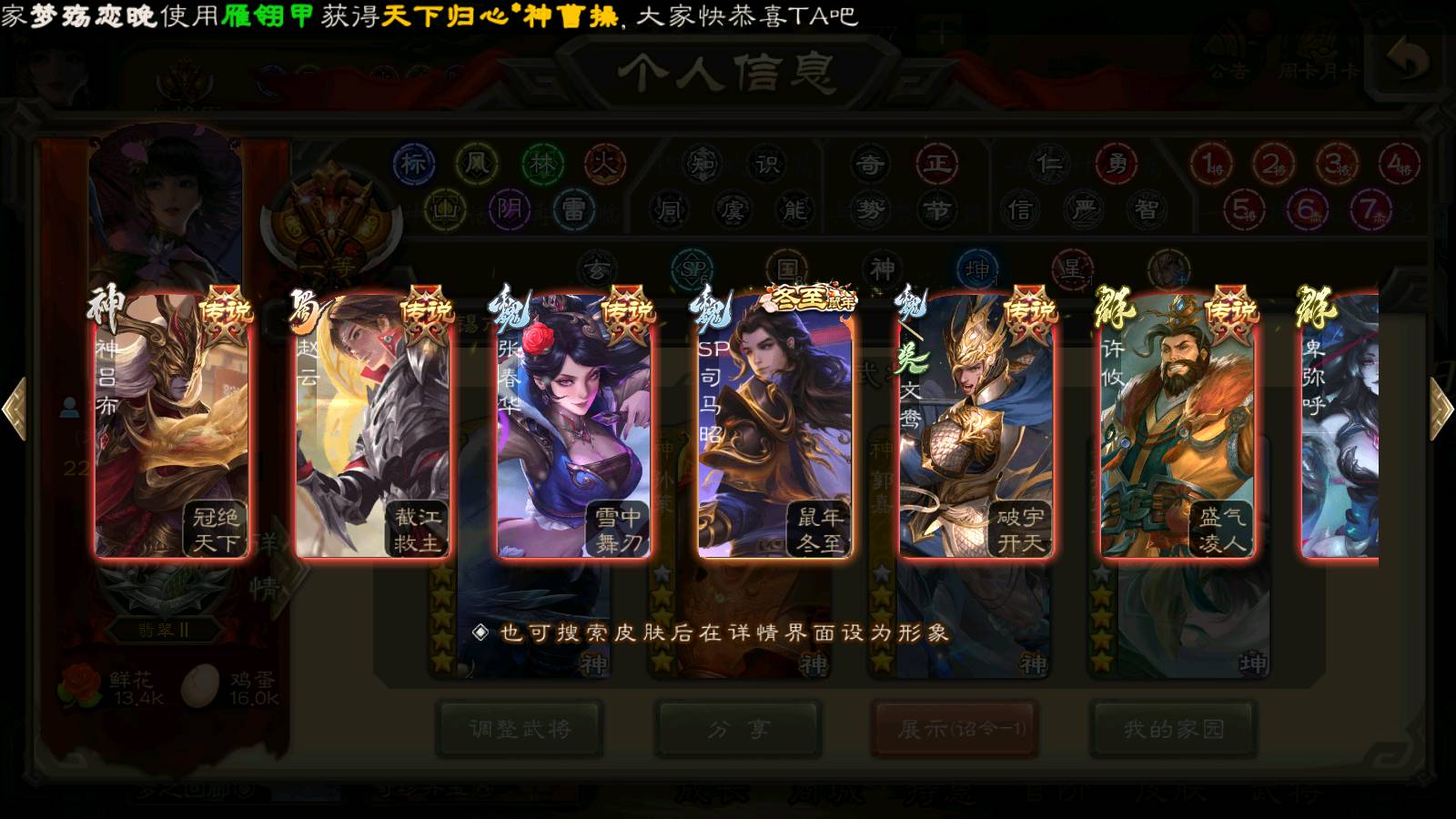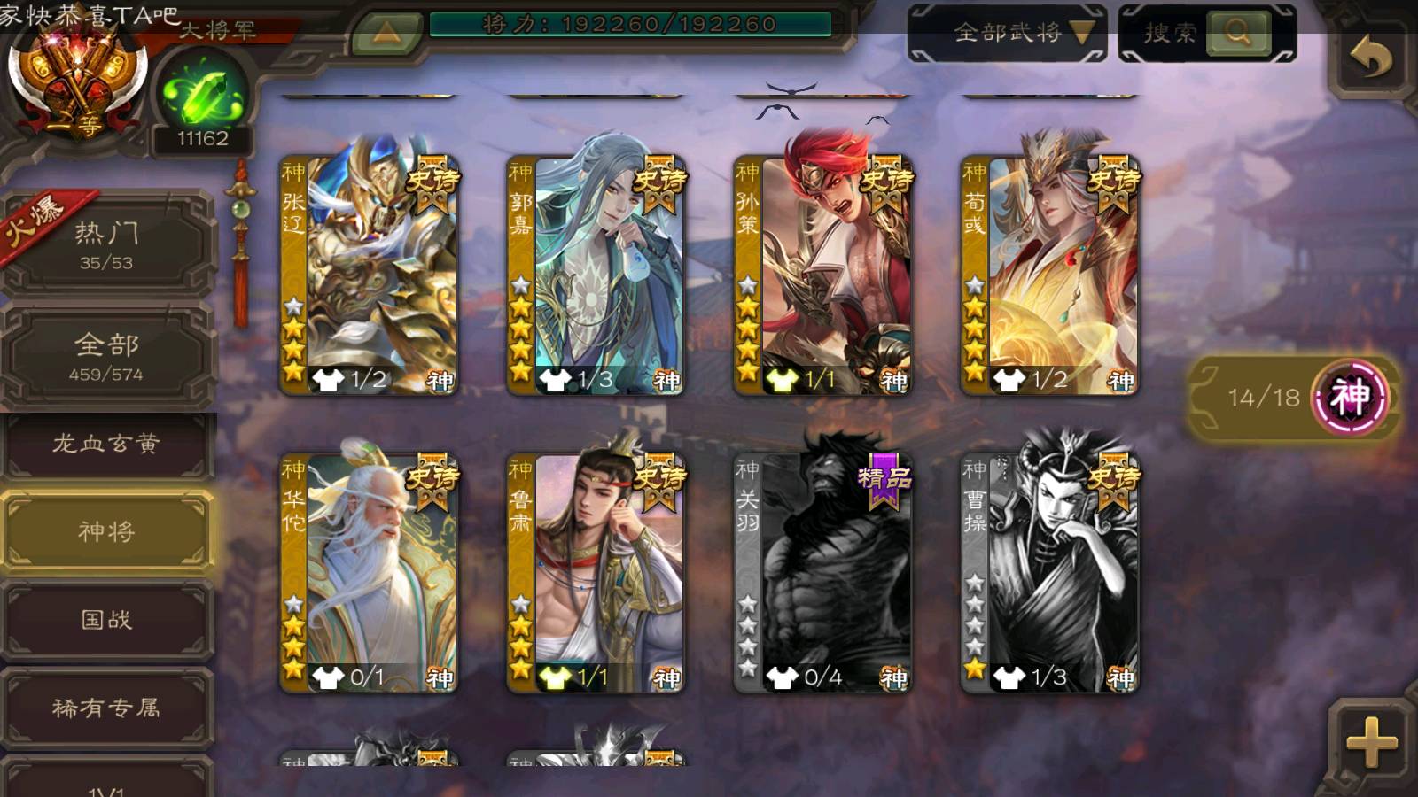 (神将):神荀彧,神郭嘉,神甘宁,神孙策,神鲁肃,神华佗,神陆逊,神赵云,神吕布,神刘备,神张辽