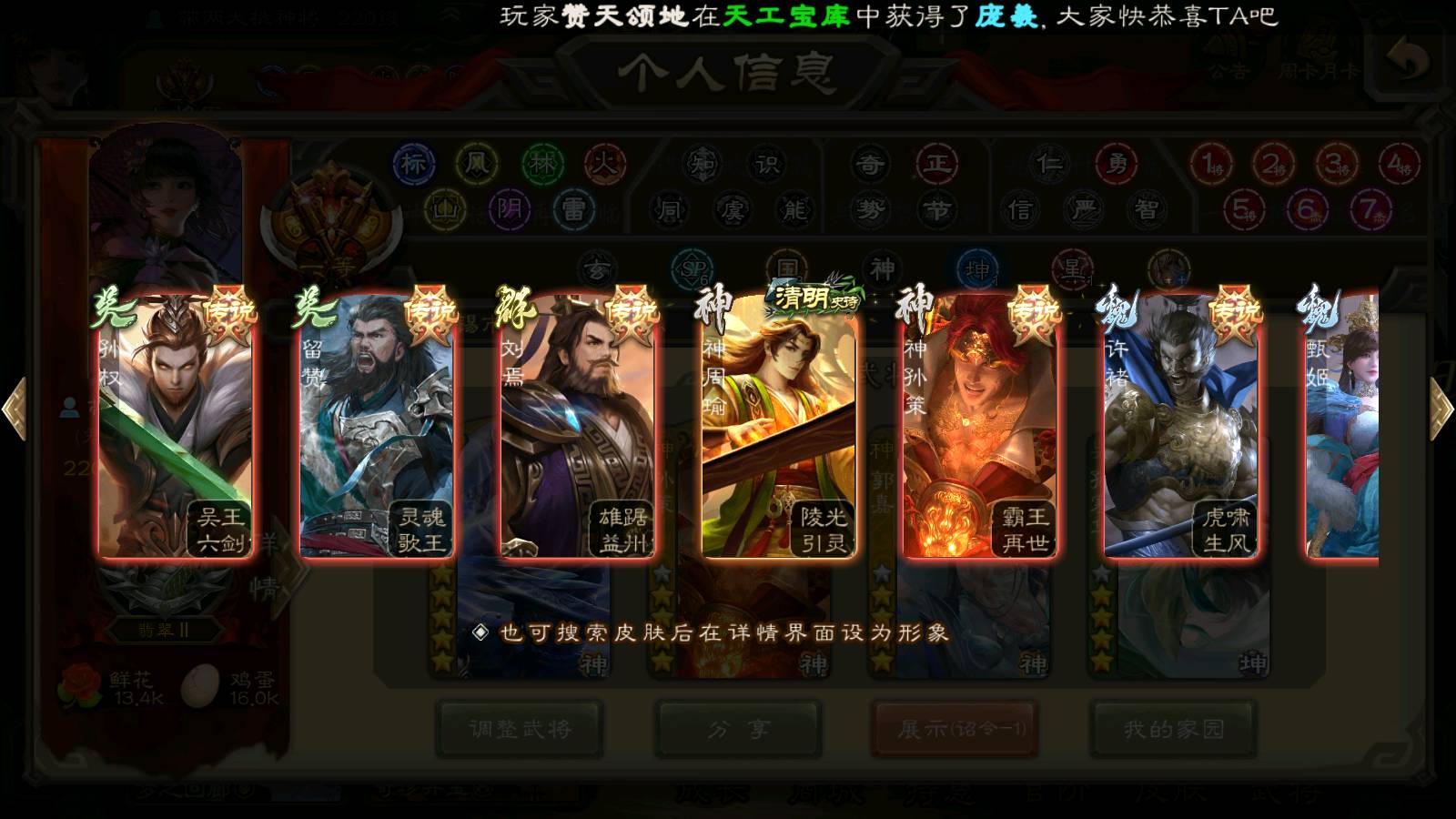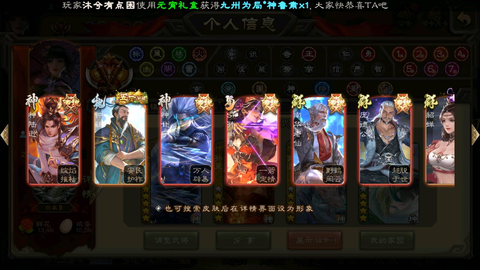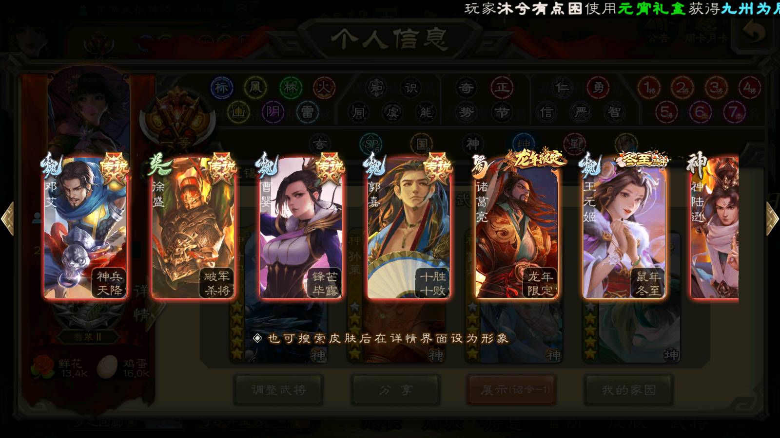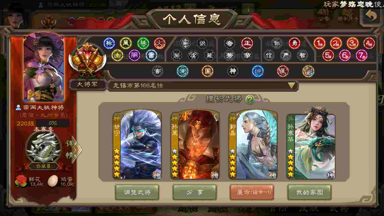 (神将):神荀彧,神郭嘉,神甘宁,神孙策,神鲁肃,神华佗,神陆逊,神赵云,神吕布,神刘备,神张辽