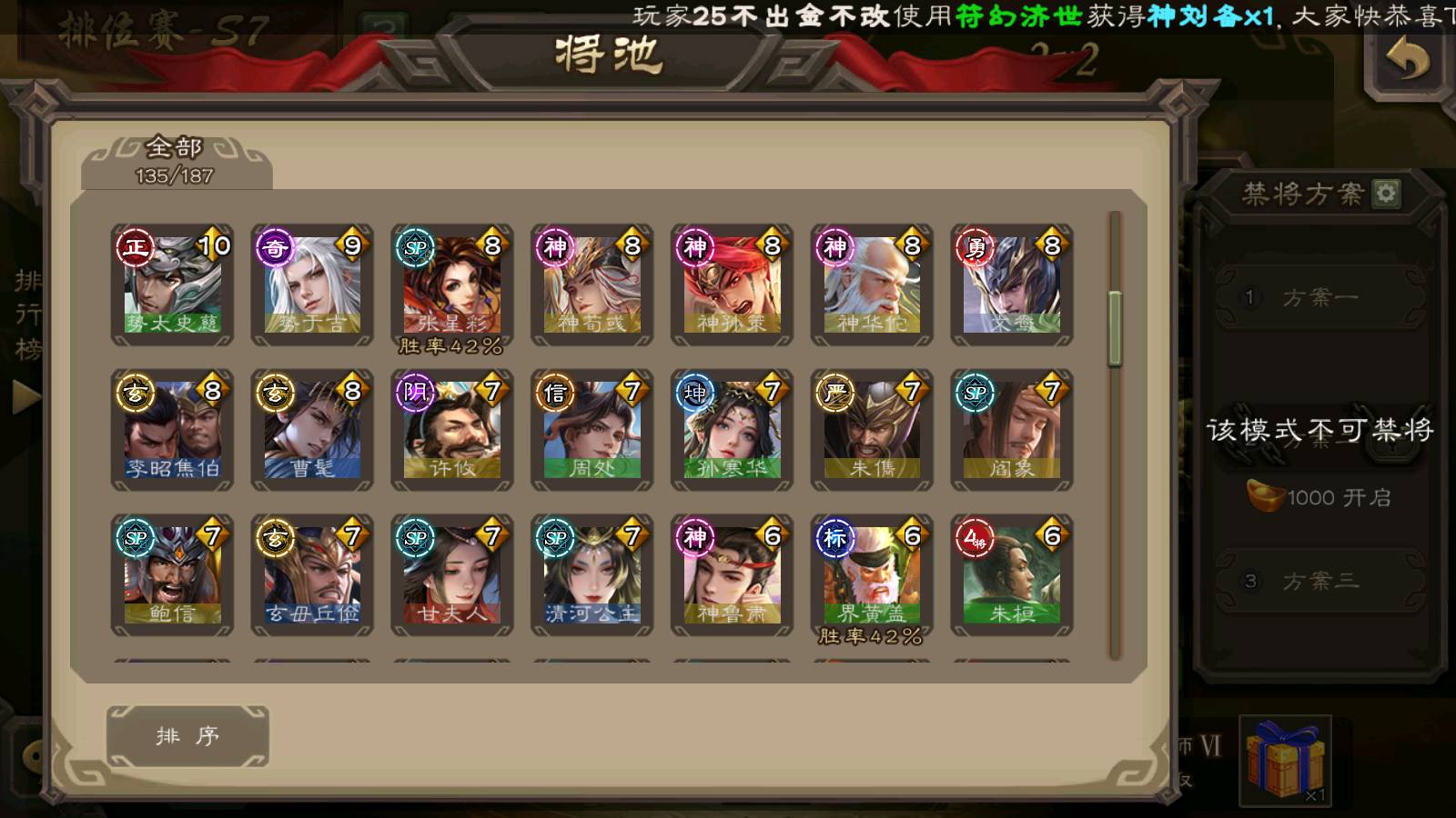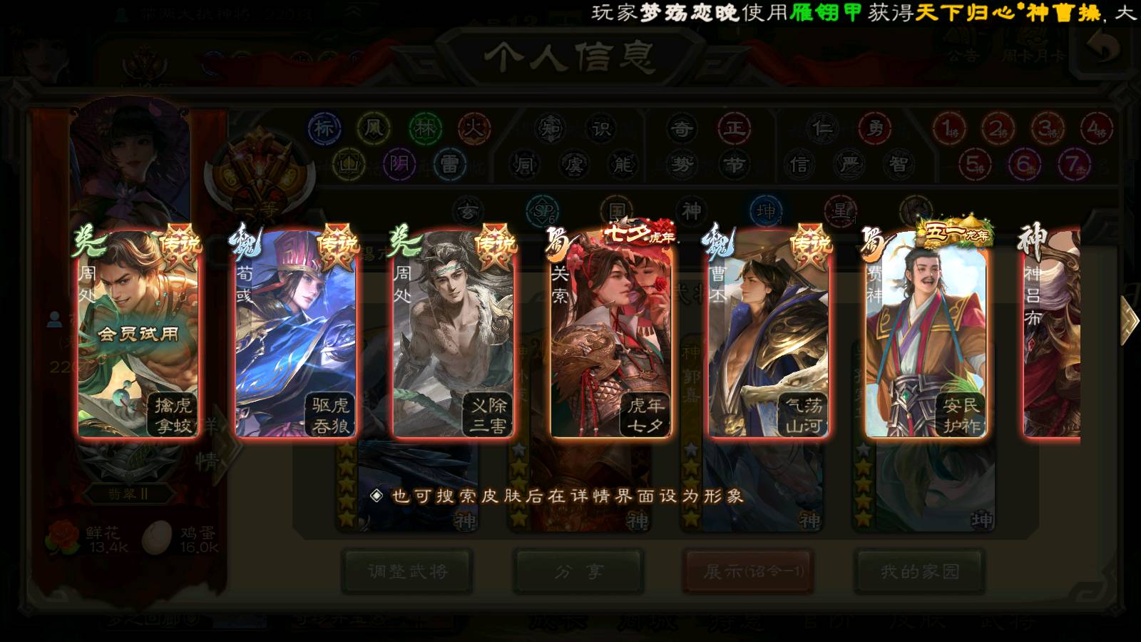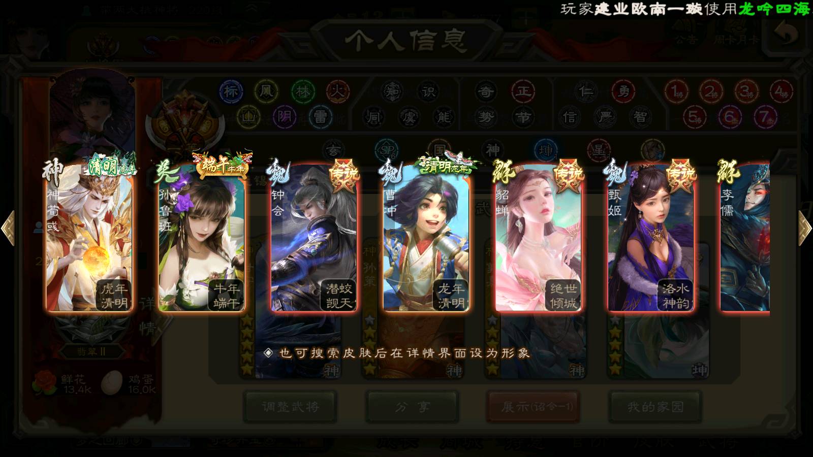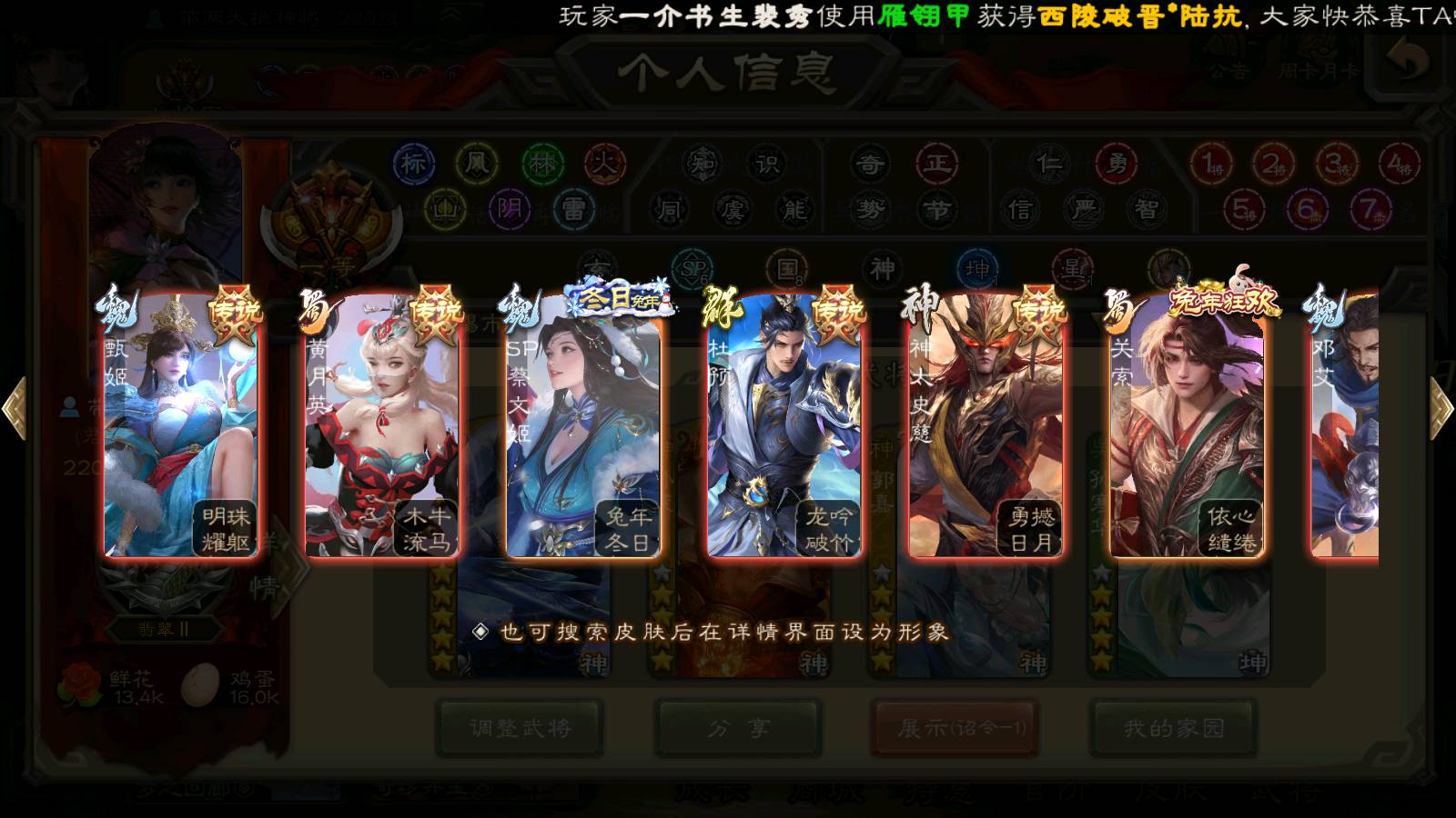 (神将):神荀彧,神郭嘉,神甘宁,神孙策,神鲁肃,神华佗,神陆逊,神赵云,神吕布,神刘备,神张辽
