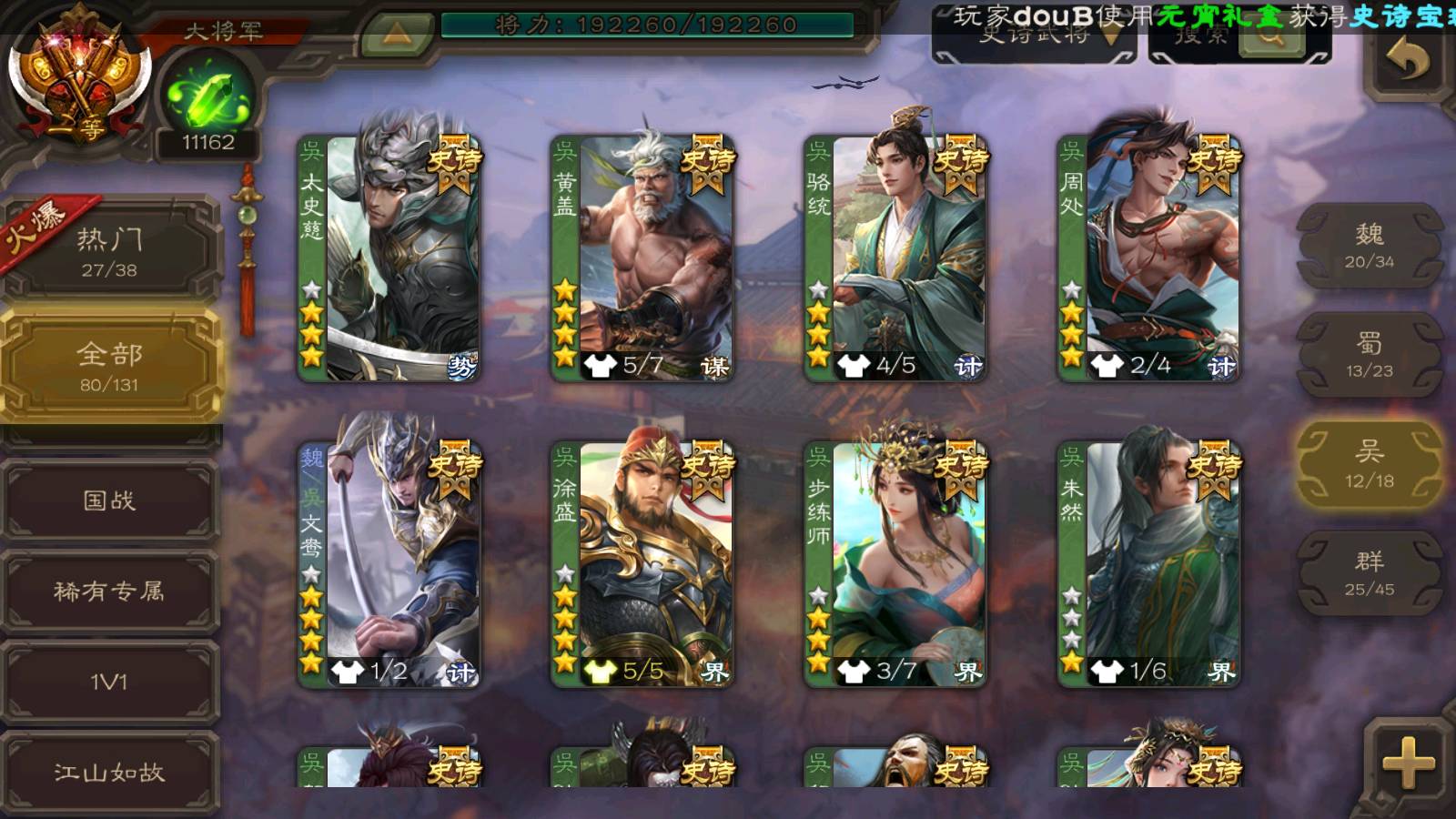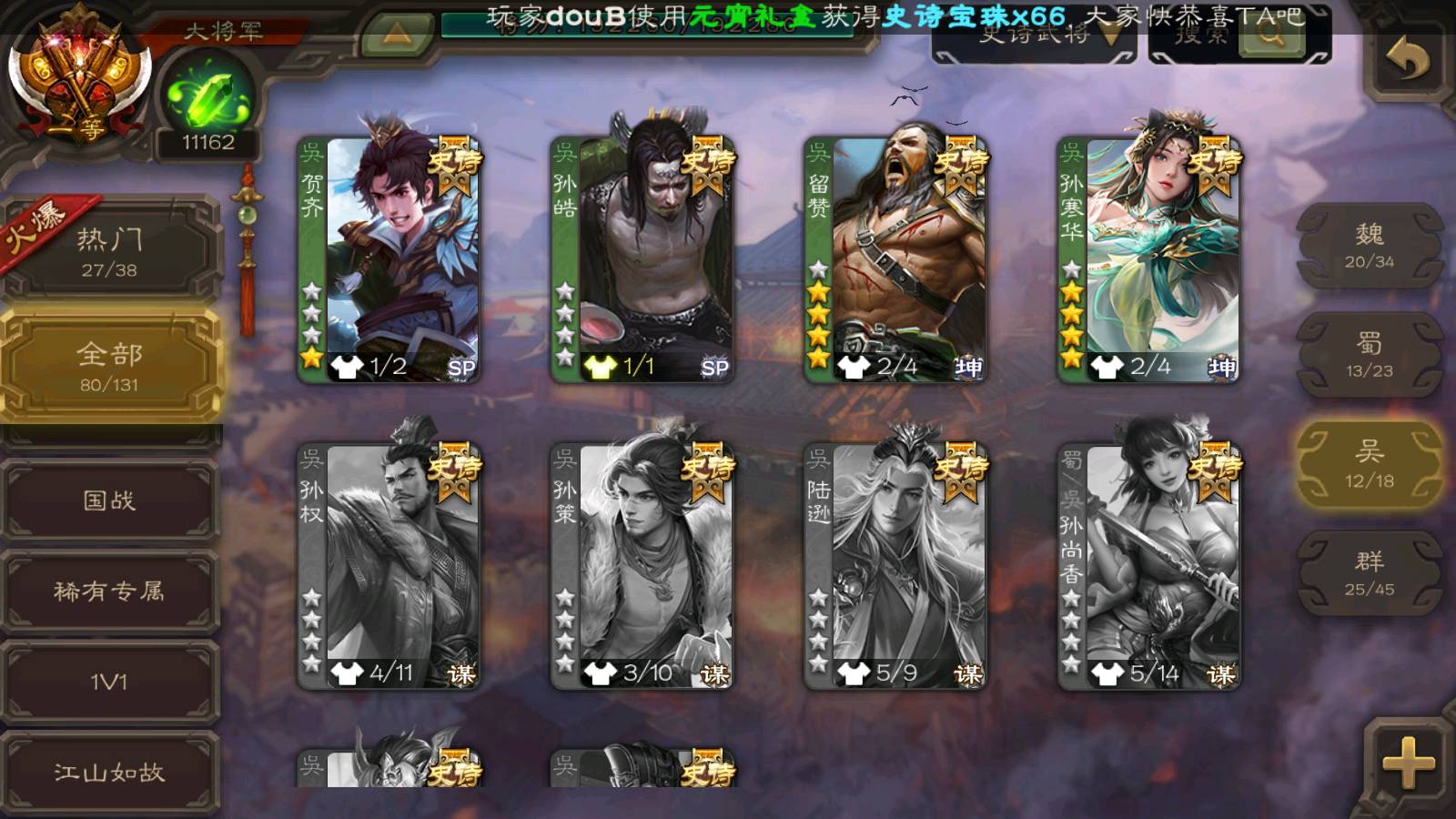 (吴国):界徐盛,留赞,孙寒华,谋黄盖,势太史慈,周处,骆统,界朱然,界步练师,贺齐,孙皓