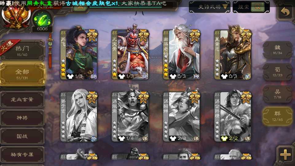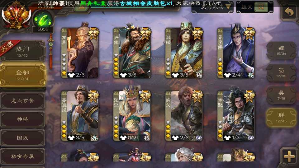(群雄):界沮授,南华老仙,麴义,许攸,张让,界李儒,苏飞,审配,星黄忠,左慈,沮授,兀突骨
