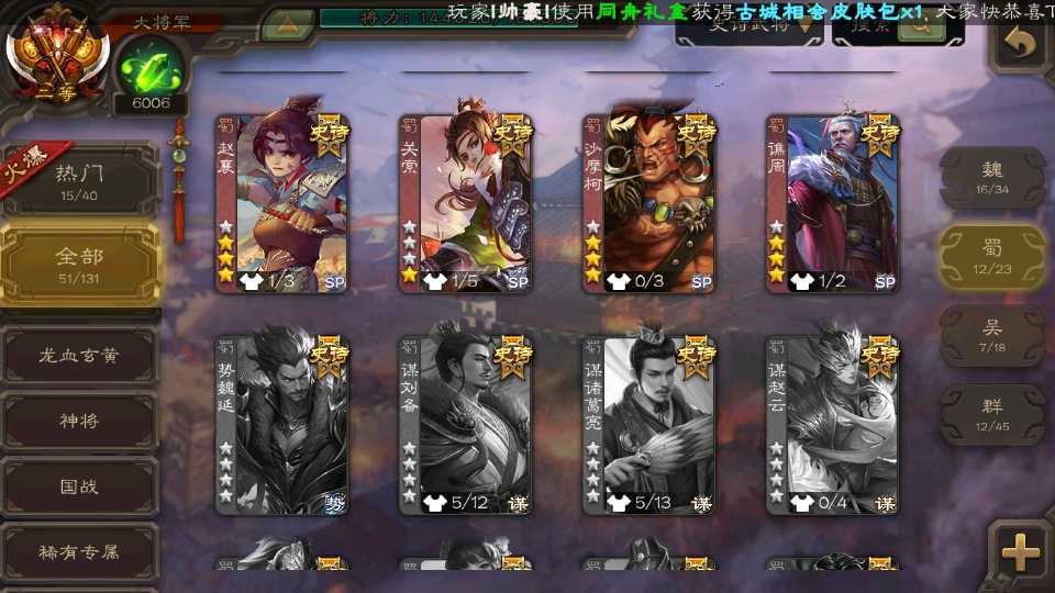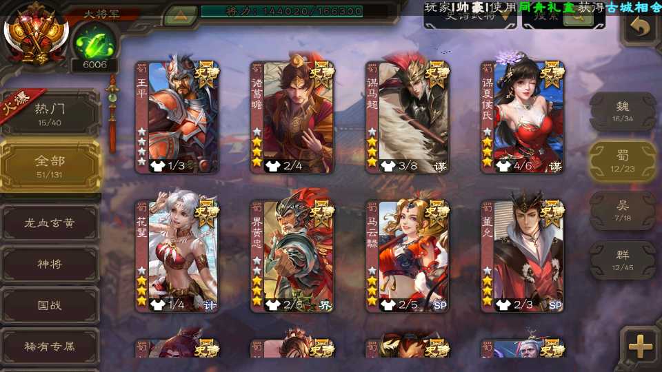 (蜀国):界黄忠,诸葛瞻,花鬘,沙摩柯,谋夏侯氏,谯周,谋马超,关索,王平,马云騄,董允,赵襄