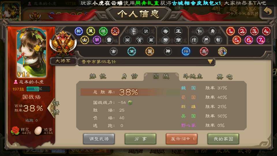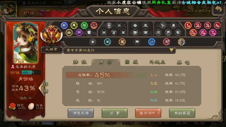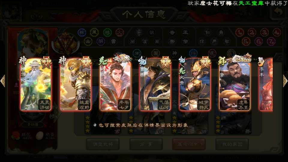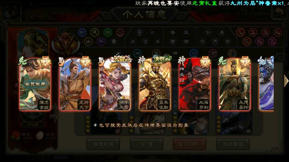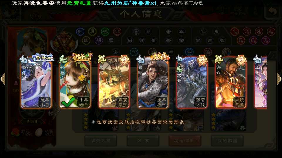 商品编号D22213 全部皮肤487,动态皮肤47,全部武将396,排位武将111,国战武将89,史诗武将51,友徐庶,文鸯双回廊,界钟会回廊,许攸动皮,王元姬动皮,麴义动皮,金票5.7w,雁翎6.7w,将魂6k