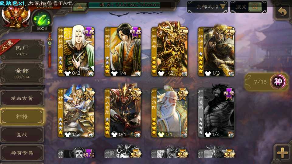 (神将):神华佗,神太史慈,神赵云,神吕布,神张辽