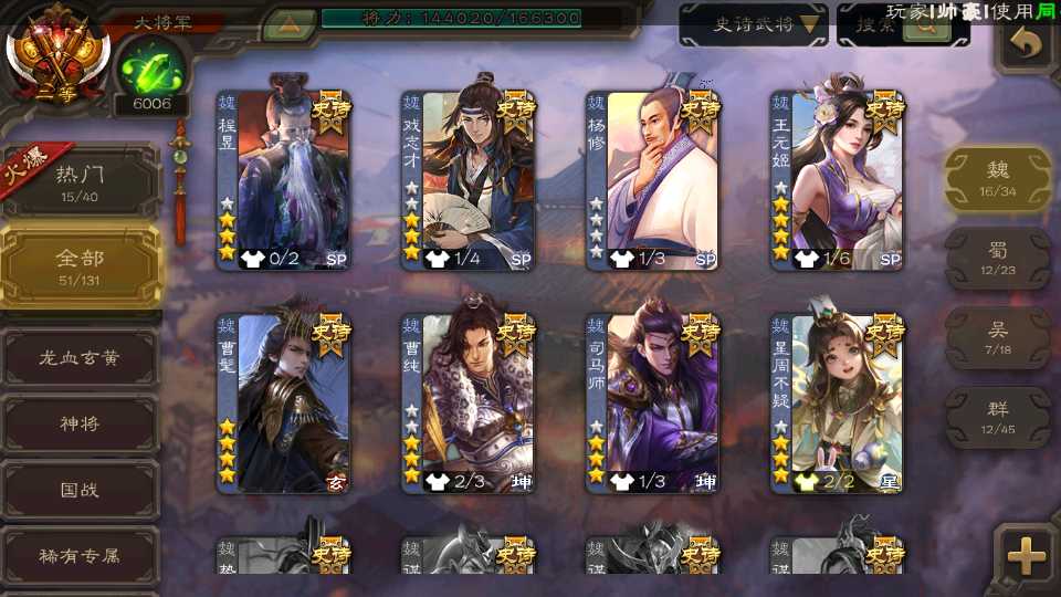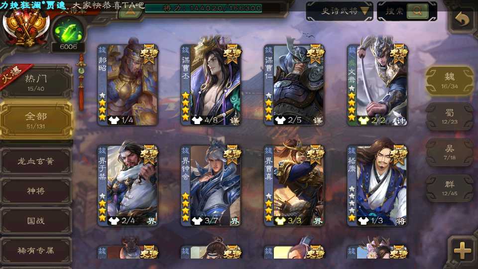 (魏国):王元姬,文鸯,戏志才,界钟会,曹髦,司马师,谋曹丕,谋曹仁,界于禁,郝昭,界曹真,星周不疑,程昱,曹纯,杨修,嵇康