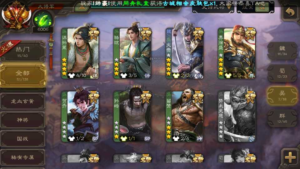 (吴国):界徐盛,留赞,骆统,谋孙策,贺齐,孙皓