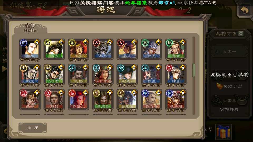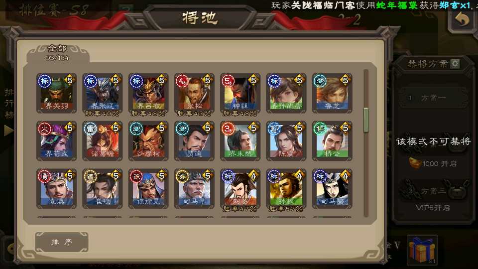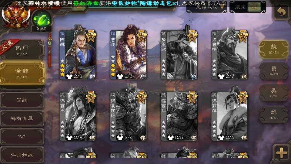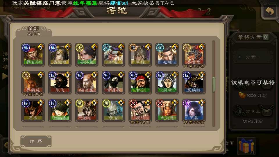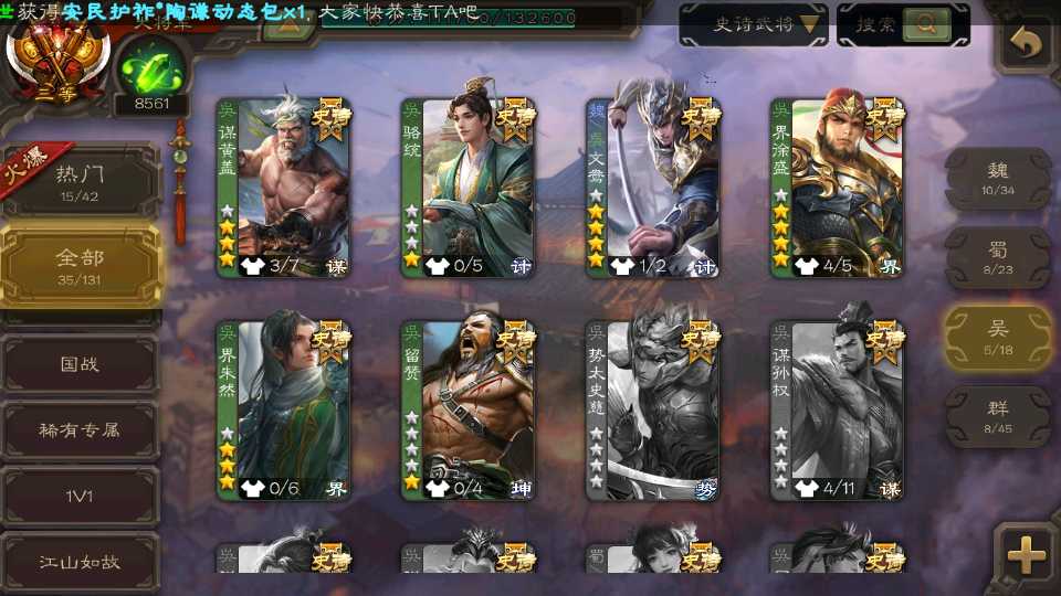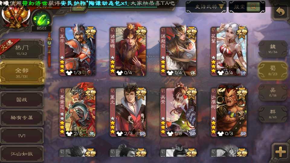 (蜀国):界黄忠,诸葛瞻,谋赵云,花鬘,沙摩柯,关索,王平,董允
