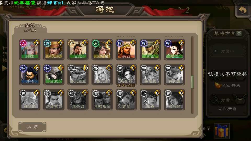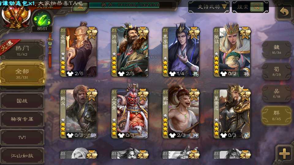 (群雄):祢衡,麴义,许攸,张让,界李儒,星黄忠,左慈,兀突骨