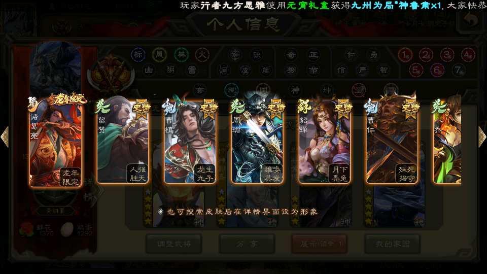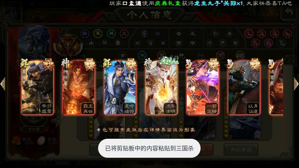 商品编号22215 全部皮肤387,动态皮肤26,全部武将318,排位武将93,国战武将82,史诗武将43,友徐庶,十常侍回廊,神荀彧动皮,神孙策动皮,文鸯动皮,谋关羽动皮,界左慈动皮,杜预动皮,麴义动皮,将魂3.6k
