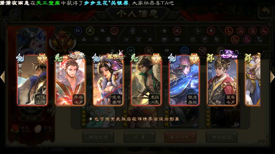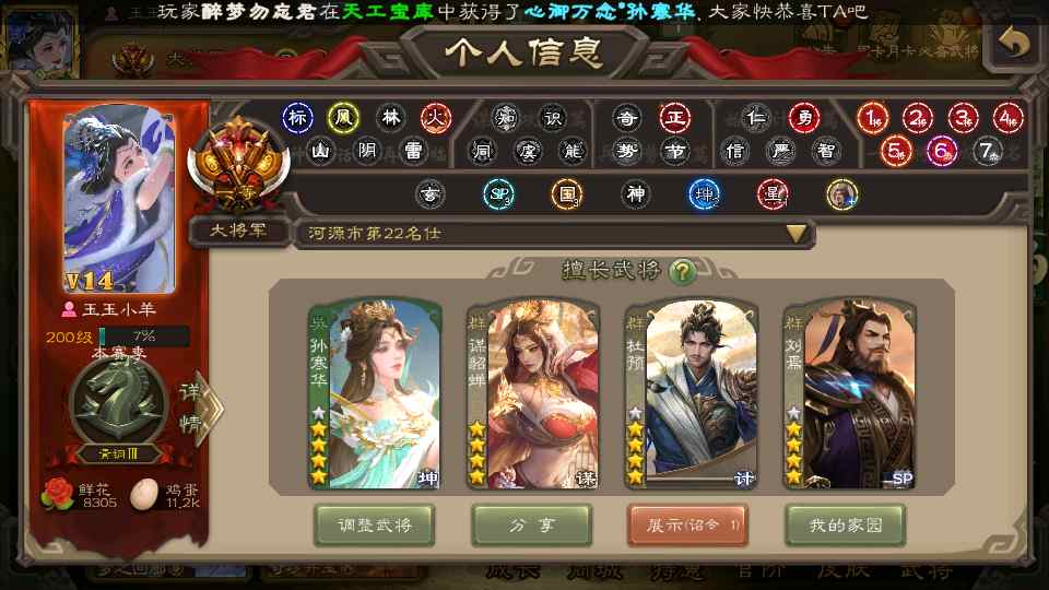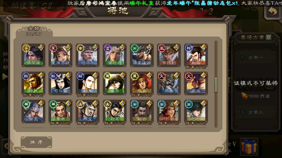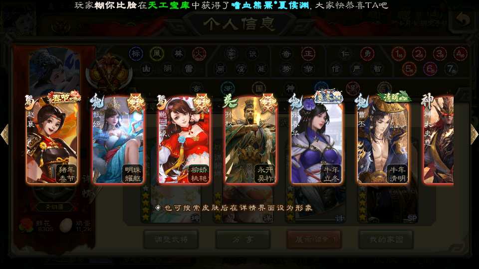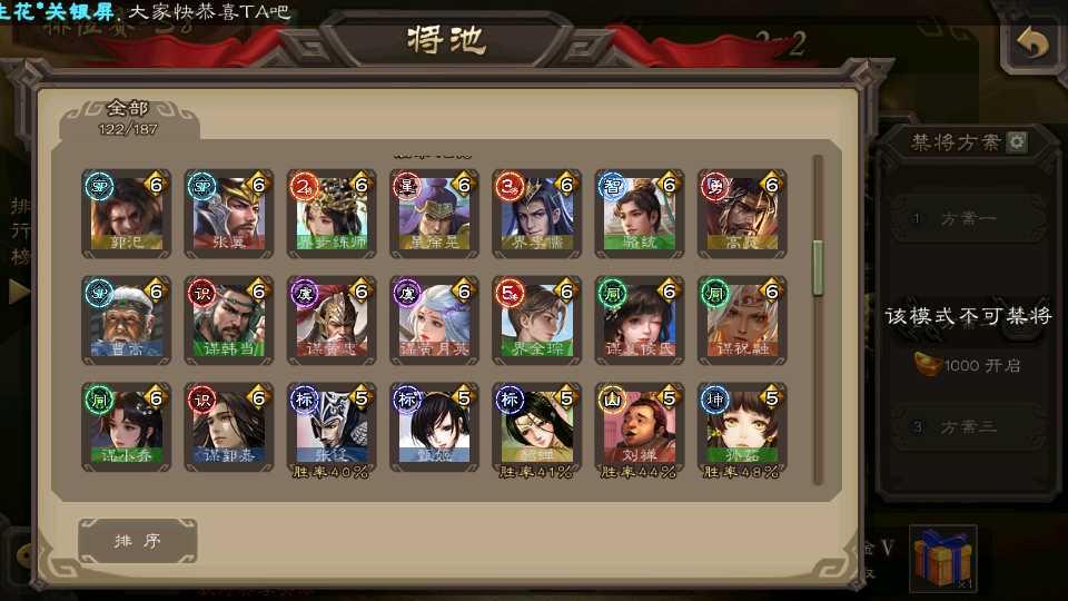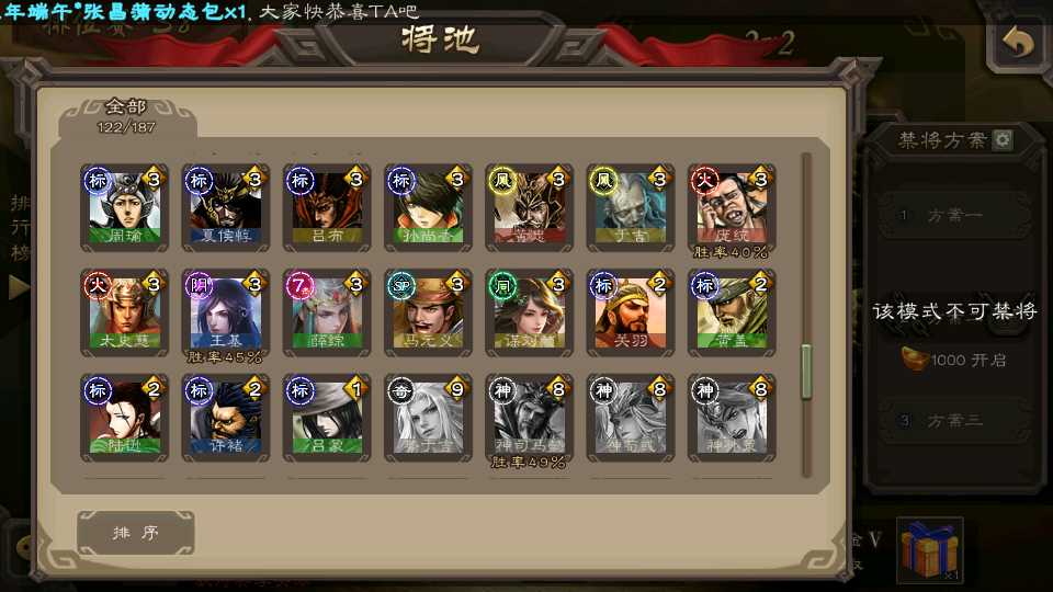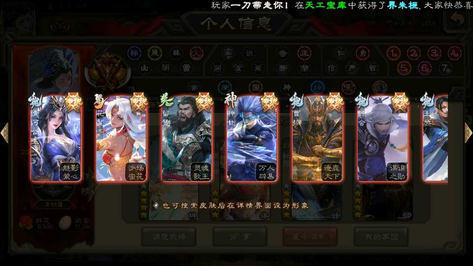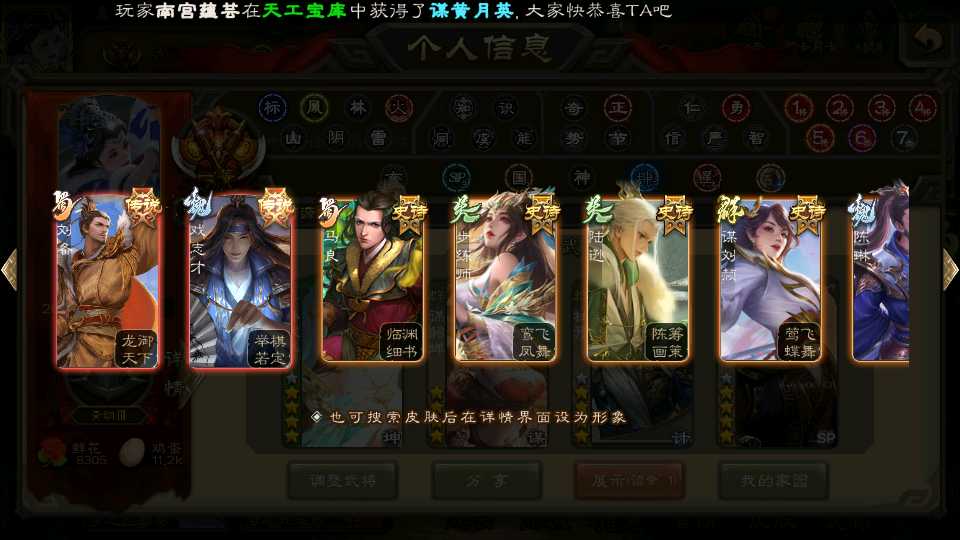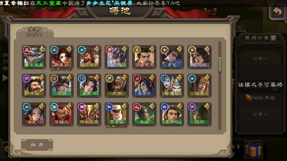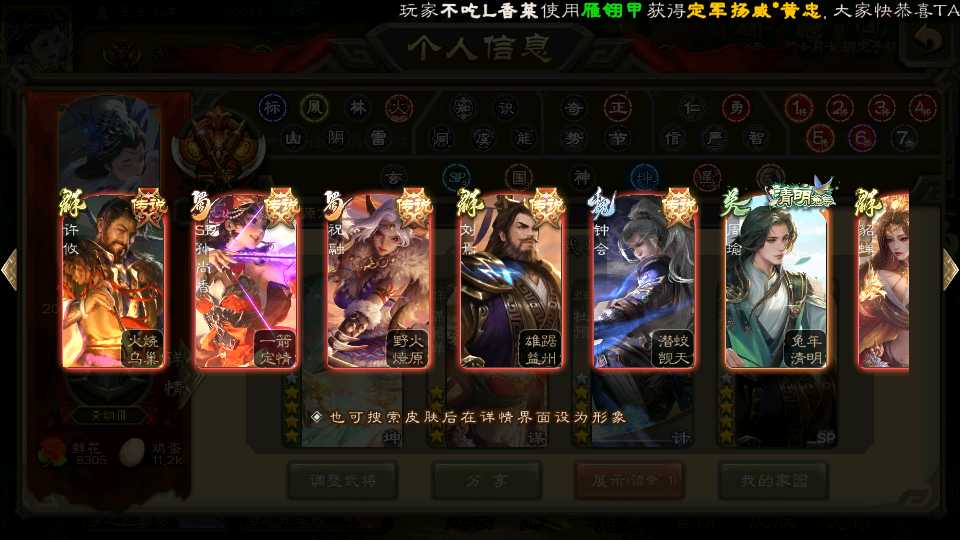 (群雄):刘焉,杜预,界左慈,界沮授,南华老仙,麴义,许攸,十常侍,谋貂蝉,司马昭,张让,界李儒,苏飞,庞德公,卑弥呼,士燮,王允,陶谦,审配,星黄忠,左慈,沮授,兀突骨