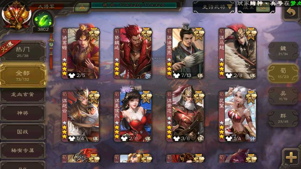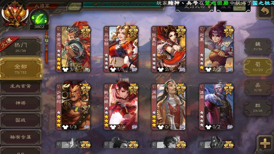(蜀国):鲍三娘,界黄忠,周群,谋黄忠,谋诸葛亮,势魏延,诸葛瞻,谋赵云,花鬘,沙摩柯,谋夏侯氏,谯周,谋马超,张星彩,马云騄,赵襄