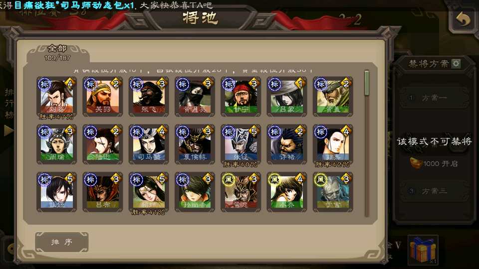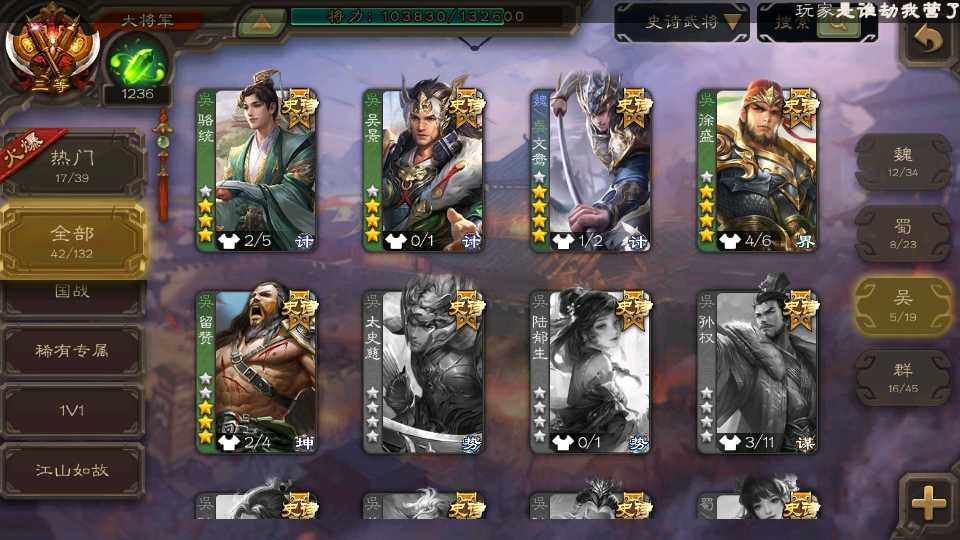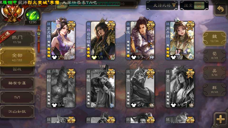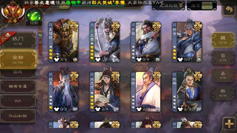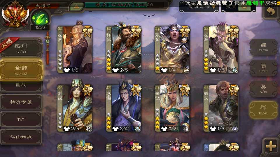 (群雄):祢衡,界左慈,南华老仙,麴义,许攸,星董卓,司马昭,张让,界李儒,苏飞,卑弥呼,谋张角,星黄忠,左慈,沮授,兀突骨