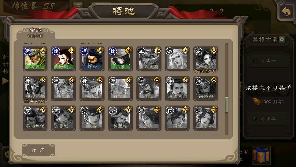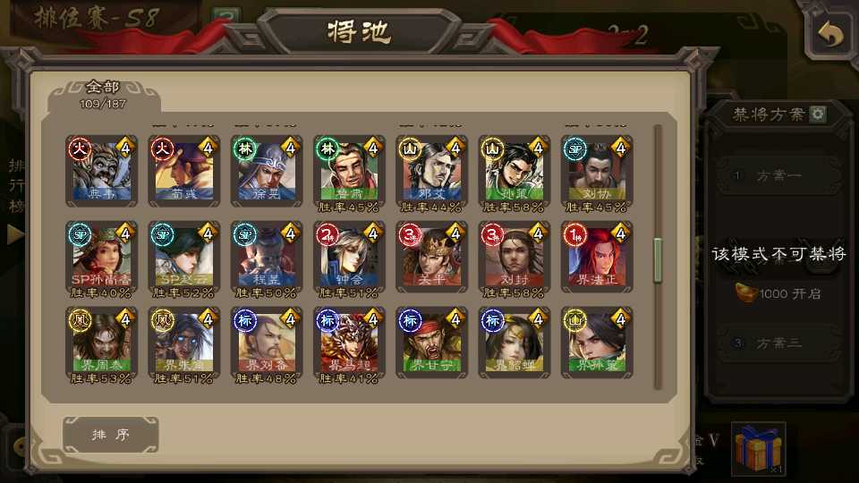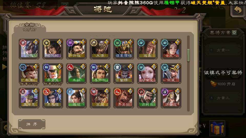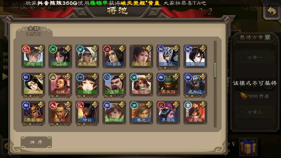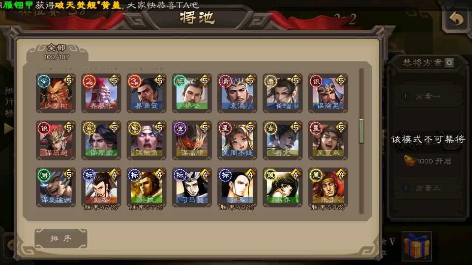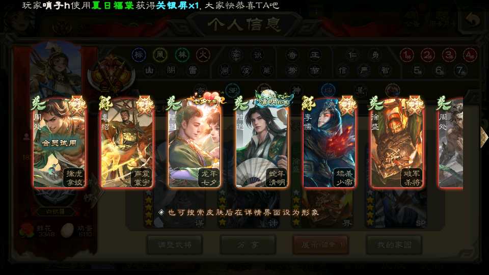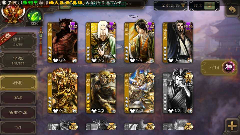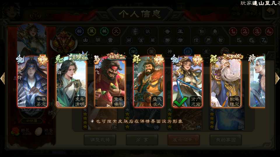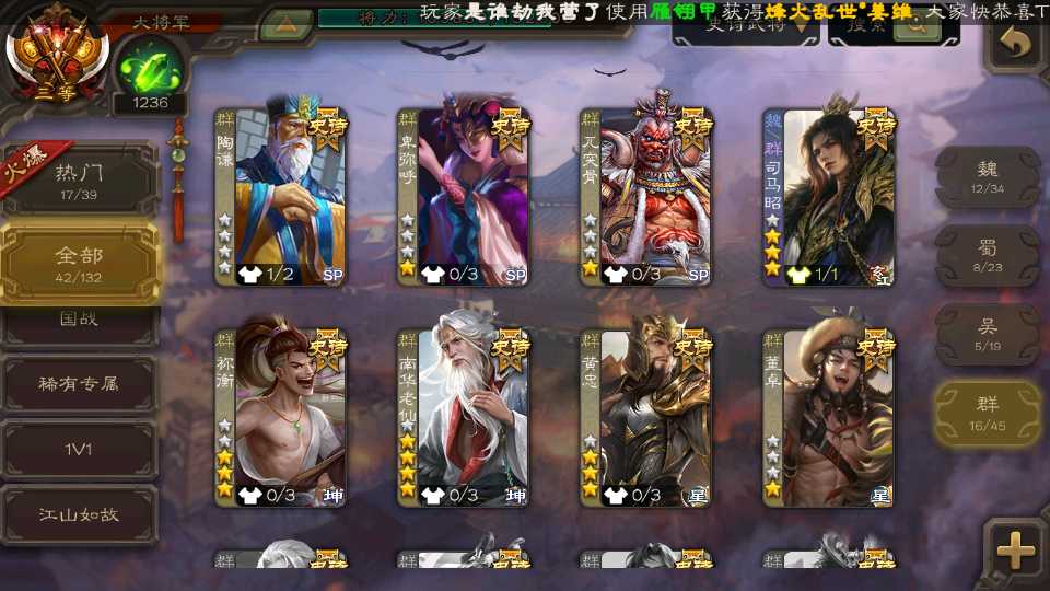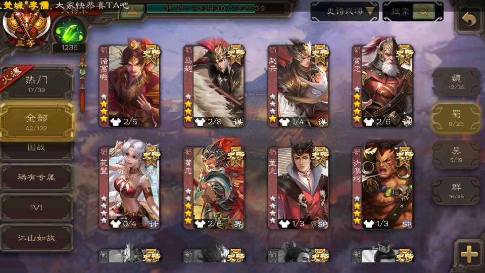(蜀国):界黄忠,谋黄忠,诸葛瞻,谋赵云,花鬘,沙摩柯,谋马超,董允