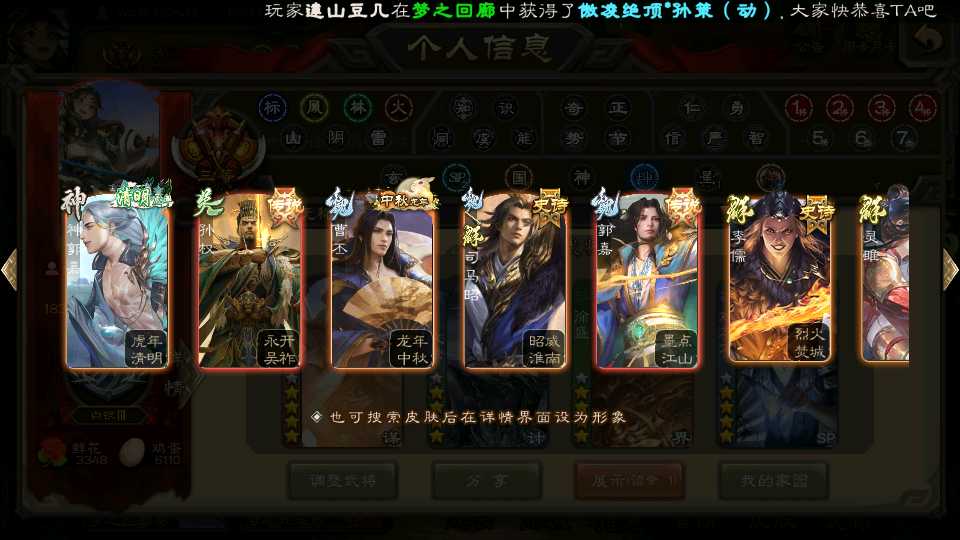 商品编号22219 全部皮肤376,动态皮肤23,全部武将345,排位武将109,国战武将89,史诗武将42,文鸯动皮,金票5.9w