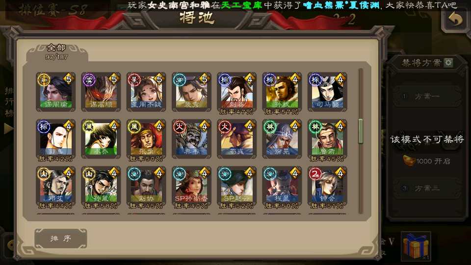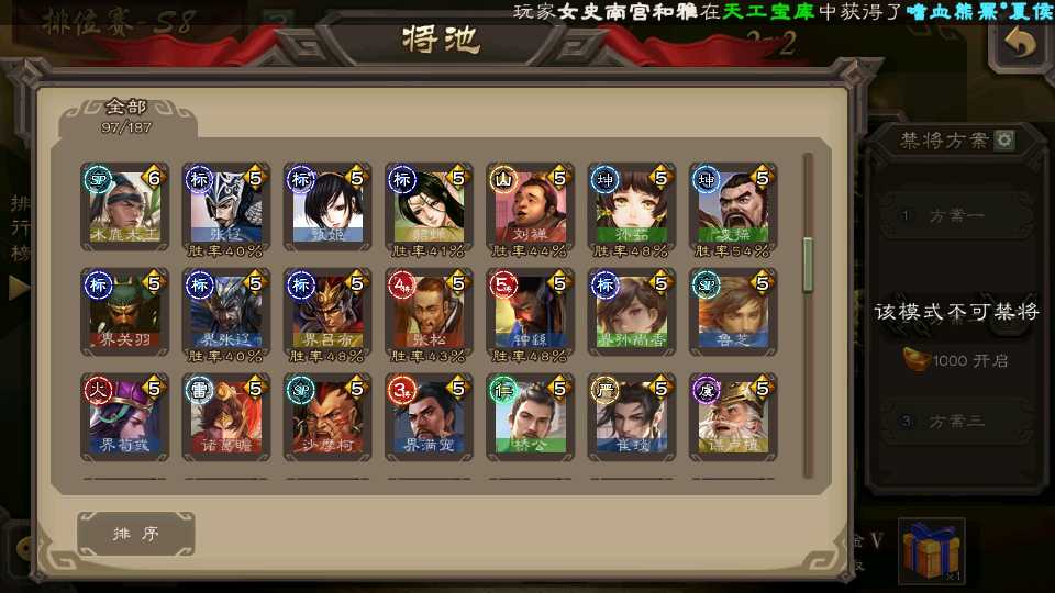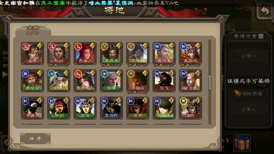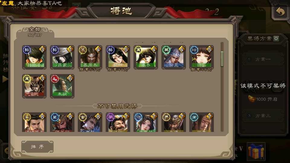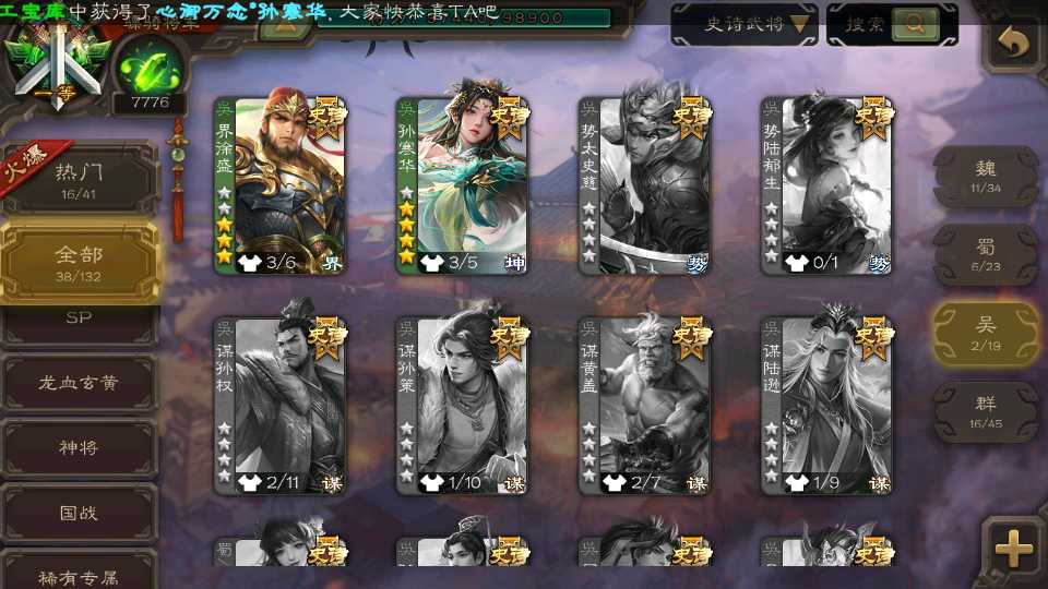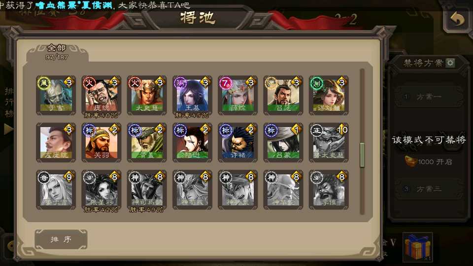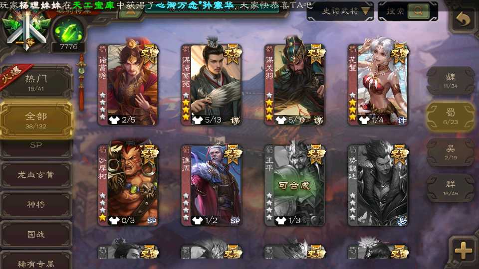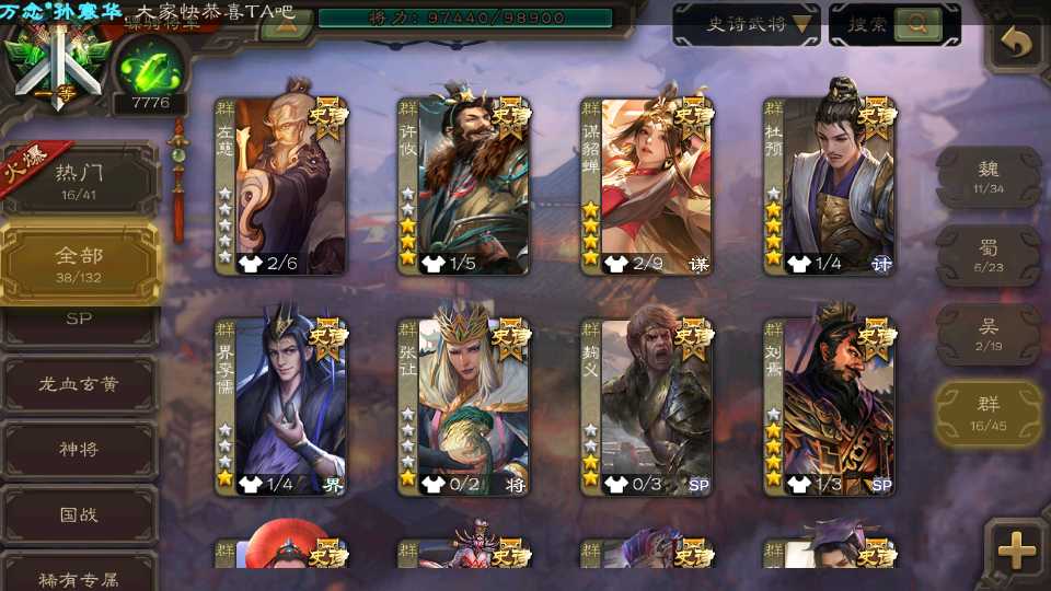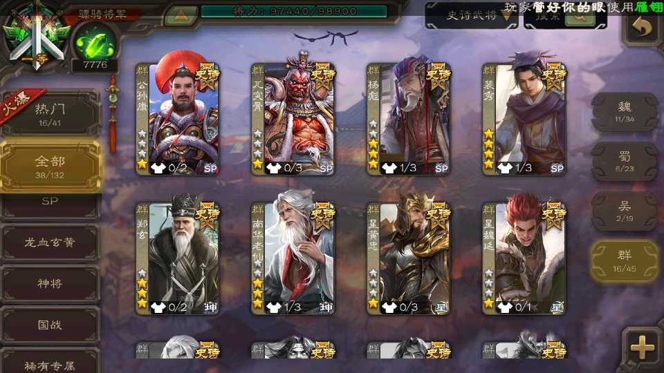 (群雄):刘焉,杨彪,谋貂蝉,杜预,南华老仙,麴义,许攸,张让,界李儒,裴秀,星魏延,郑玄,星黄忠,公孙康,左慈,兀突骨