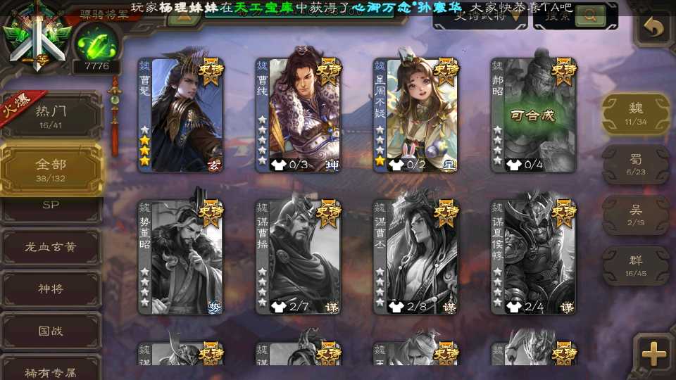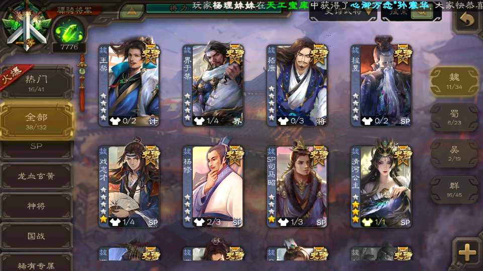 (魏国):戏志才,曹髦,SP司马昭,清河公主,界于禁,王粲,星周不疑,程昱,曹纯,杨修,嵇康